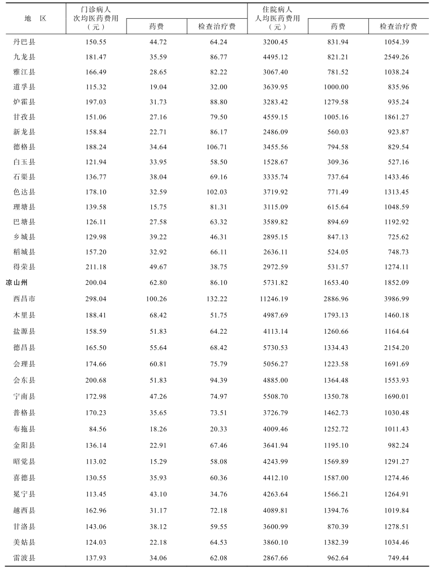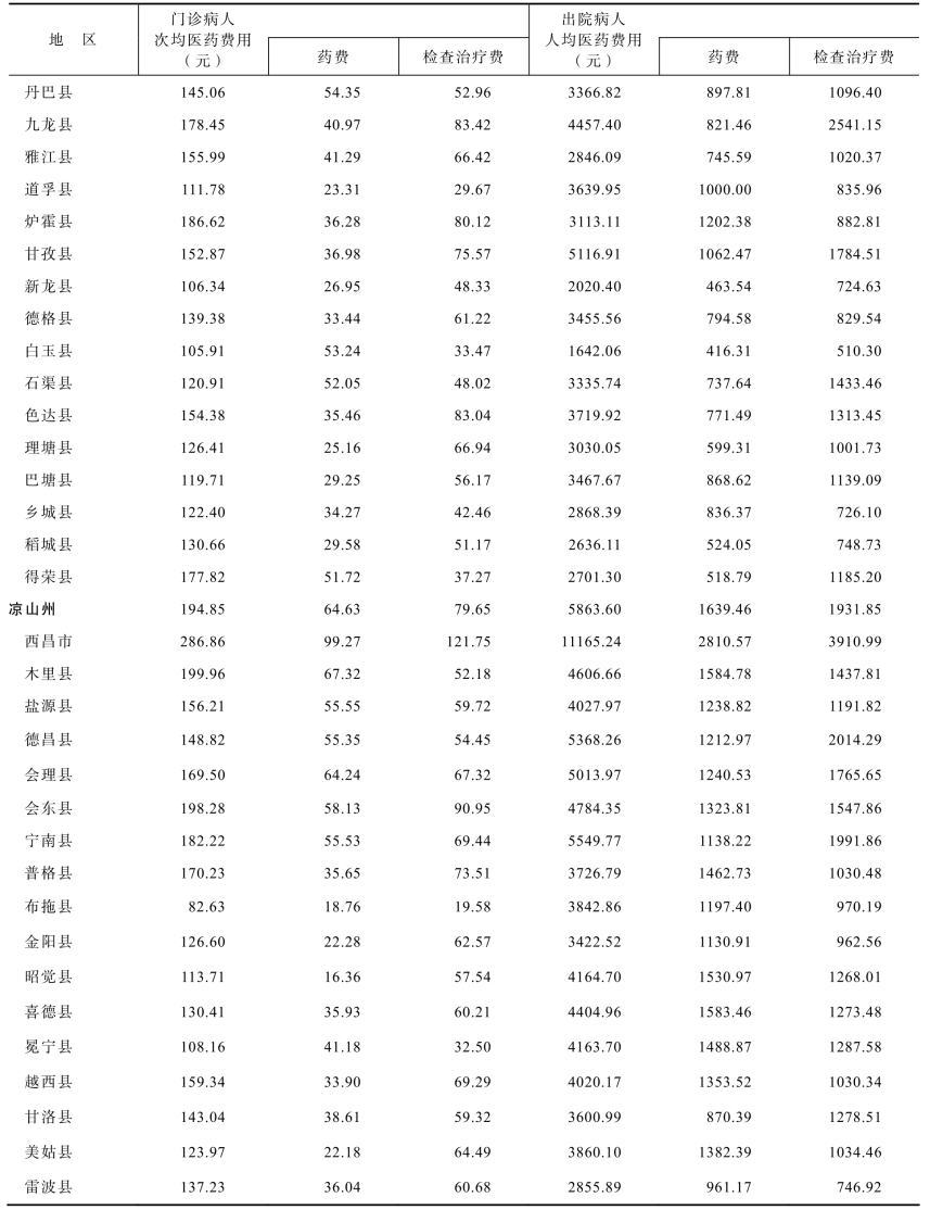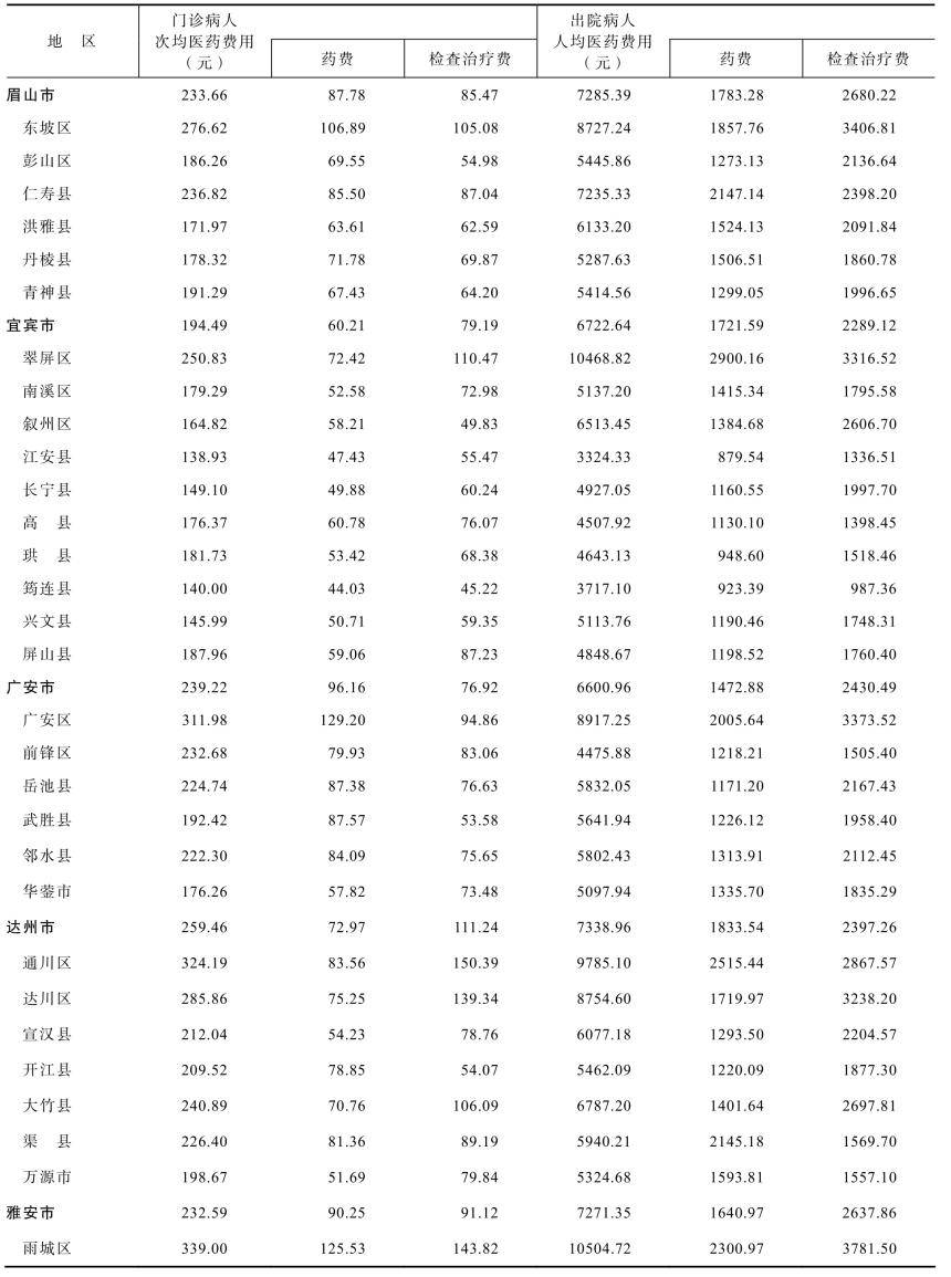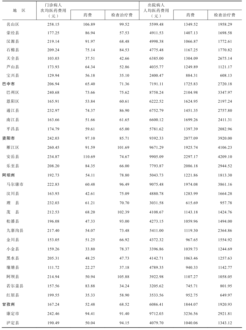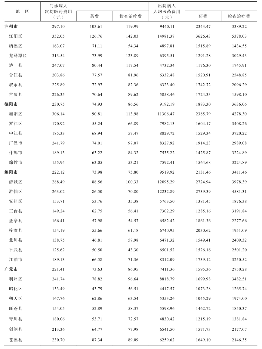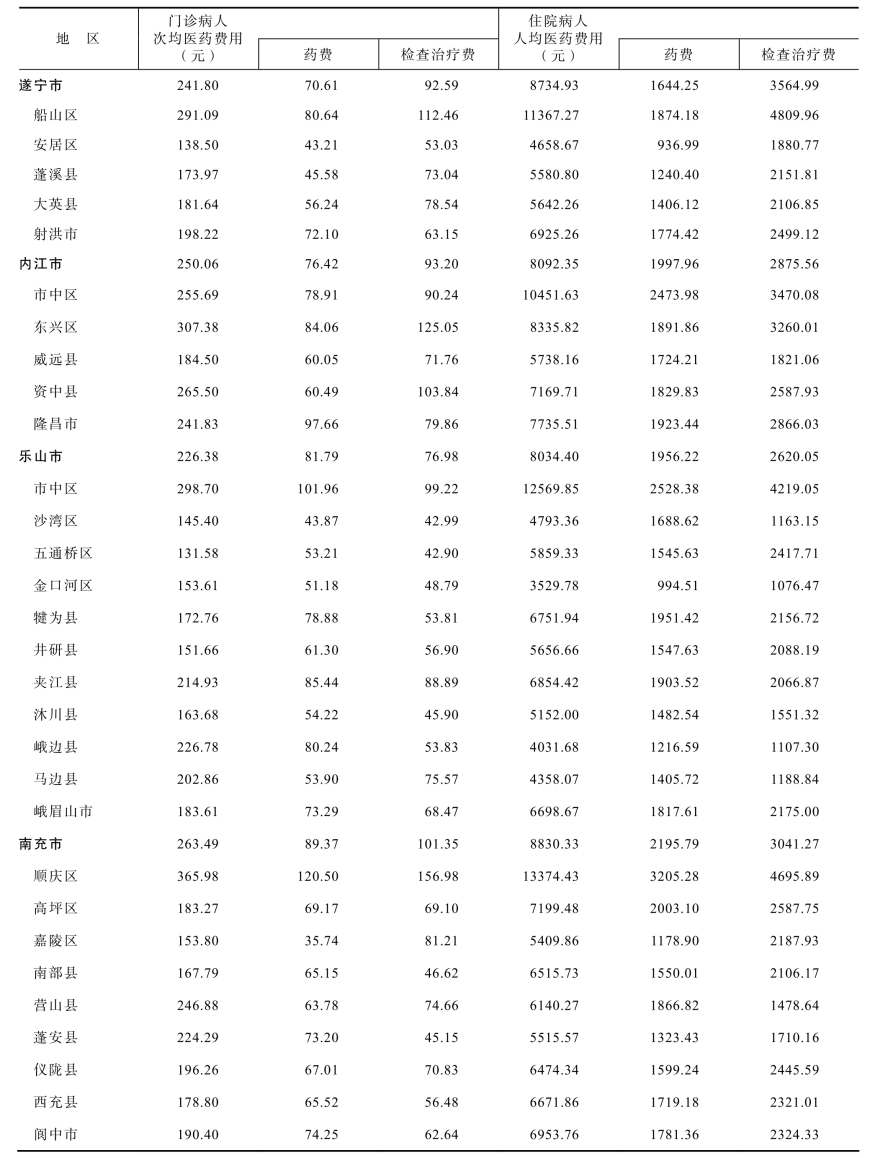 注:① 按当年价格计算;② 出院病人检查治疗费中含手术费。