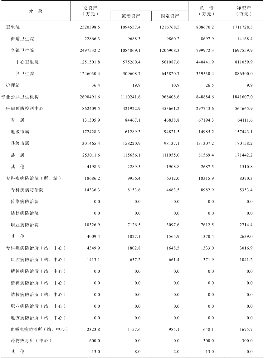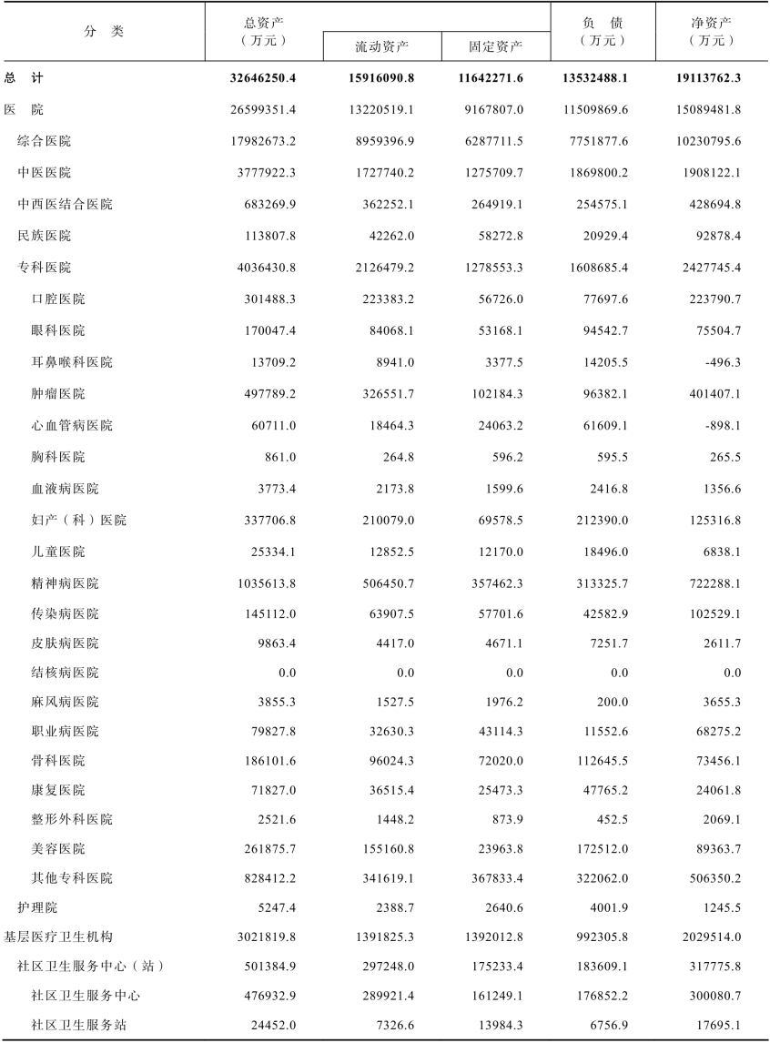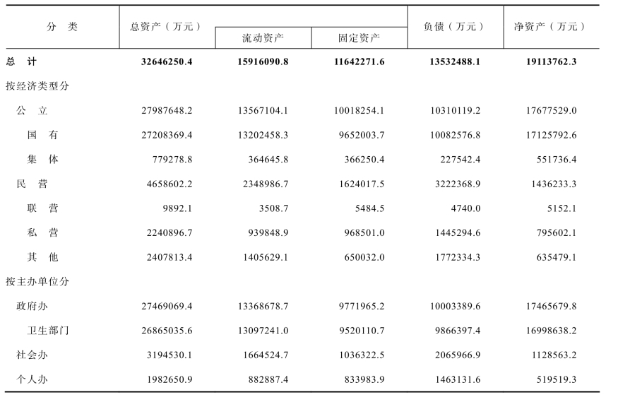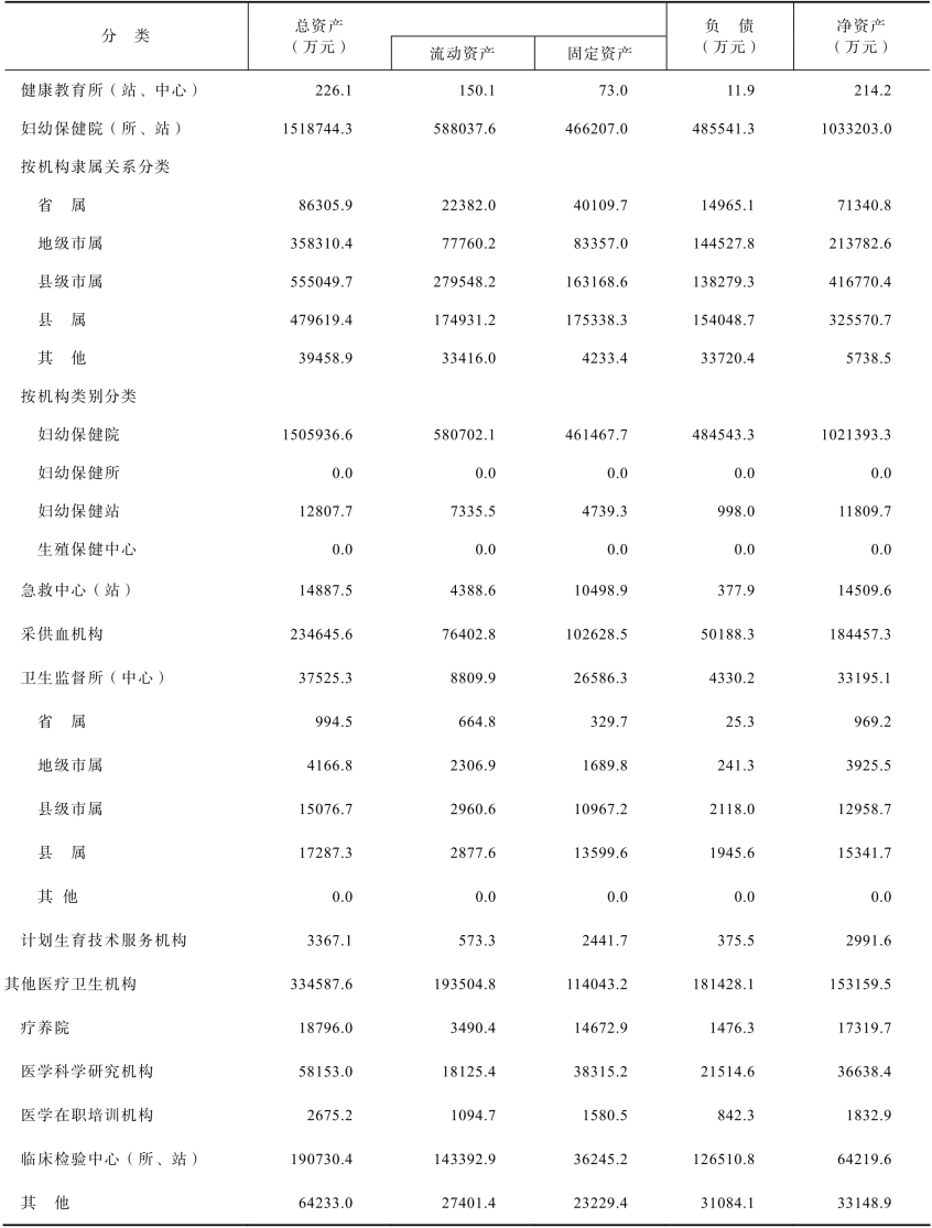表4-2-2 2020年全省不同性质医疗卫生机构资产与负债
