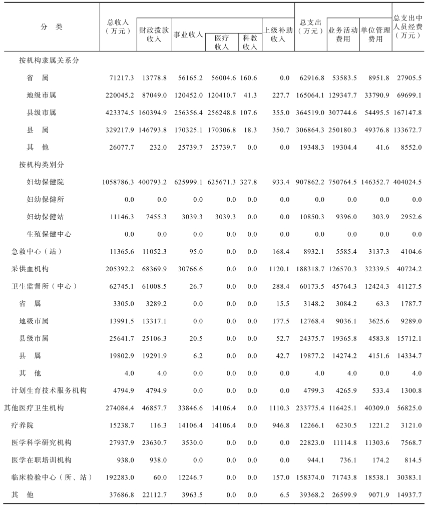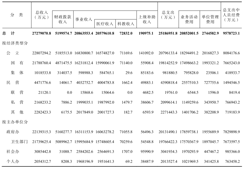 表4-3-2 2020年全省不同性质医疗卫生机构收入与支出