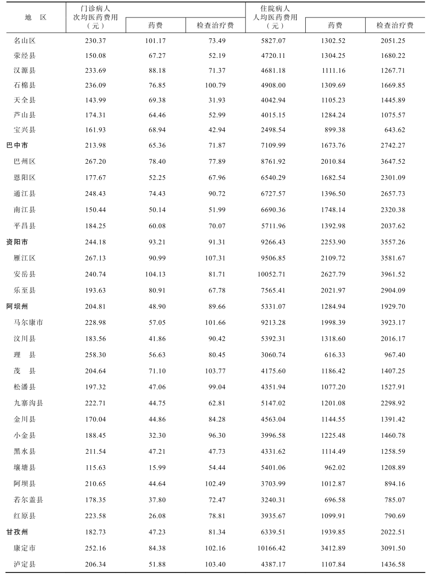 表4-5-4 2020年市(州)及县(市、区)综合医院门诊病人次均医药费用和出院病人人均医药费用