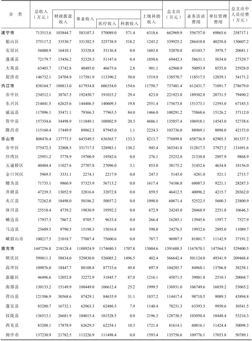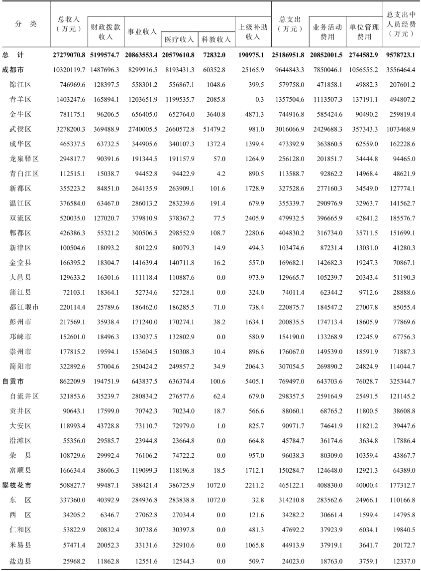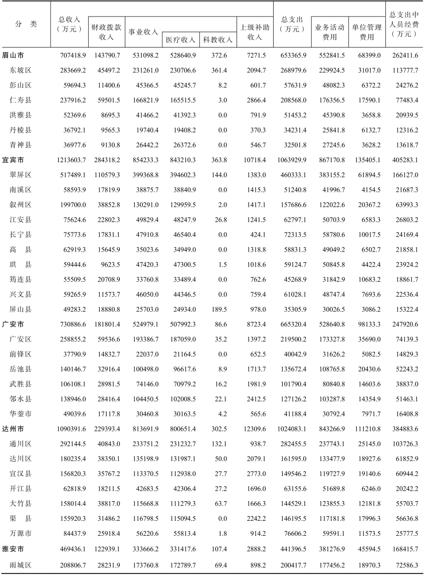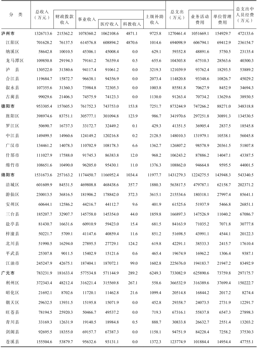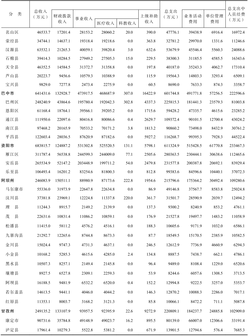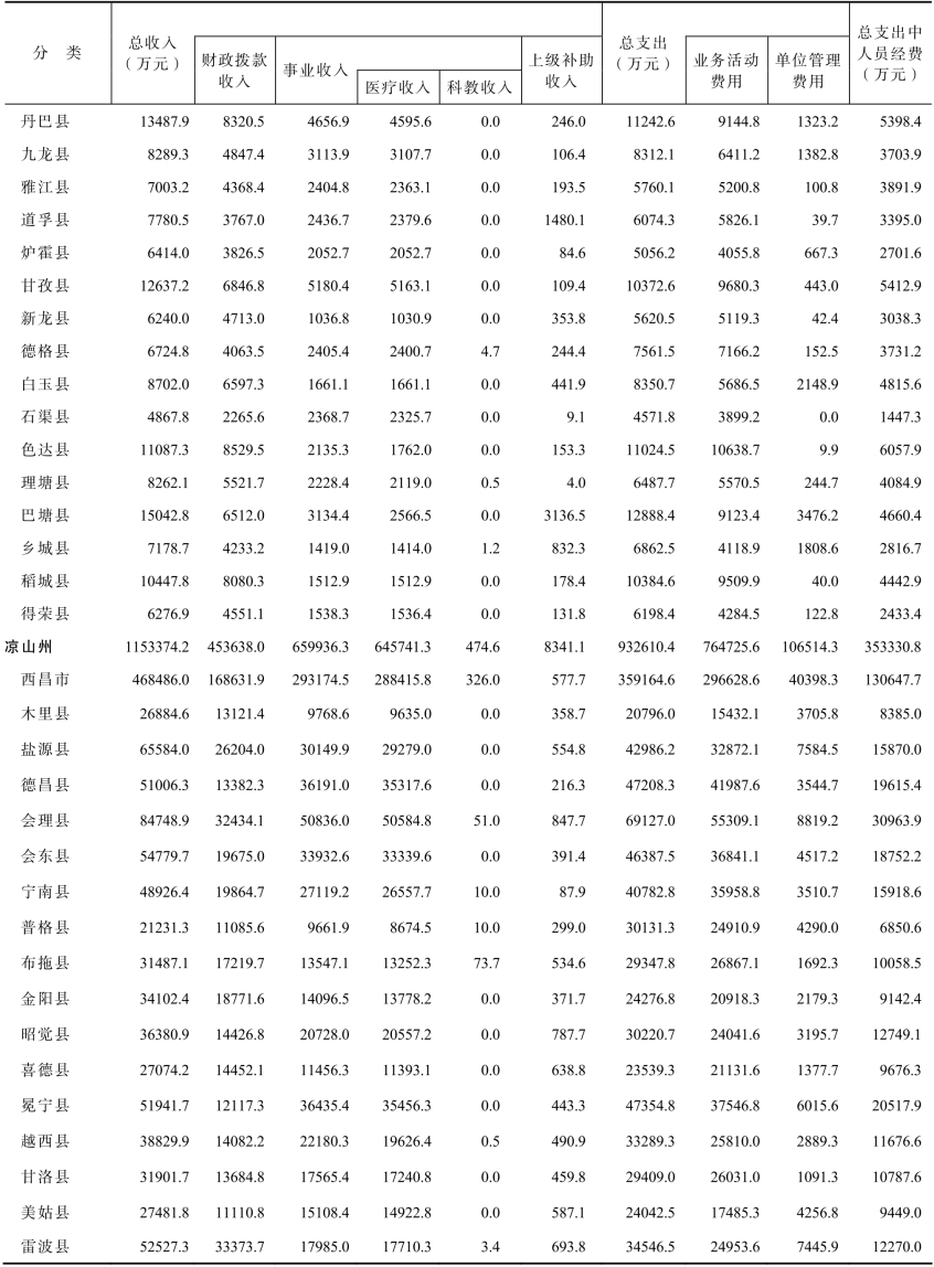 表4-3-3 2020年市(州)及县(市、区)医疗卫生机构收入与支出