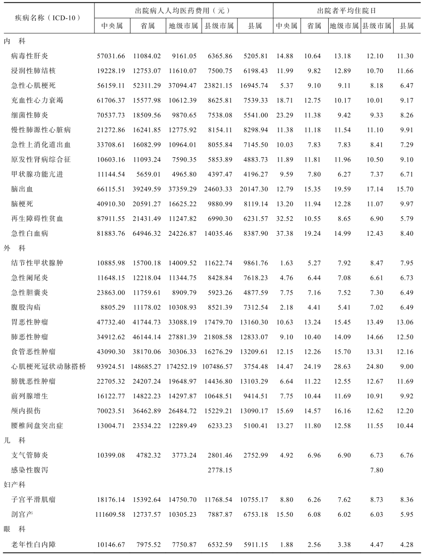 表4-6-2 2020年全省卫生部门办五级综合医院30种疾病出院病人人均医药费用及平均住院日