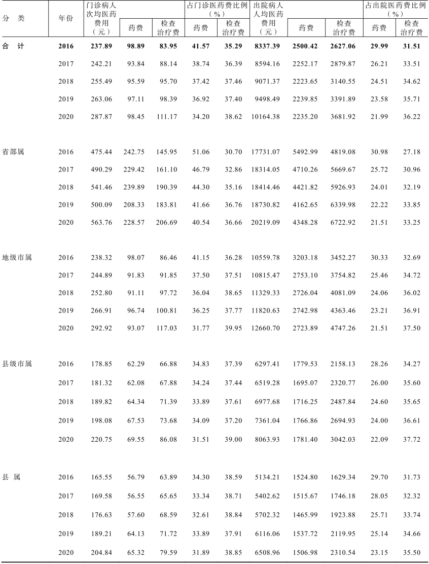 门诊病人次均医药费用:又称“每诊疗人次医药费用”,即(医疗门诊收入+药品门诊收入)/总诊疗人次数。
