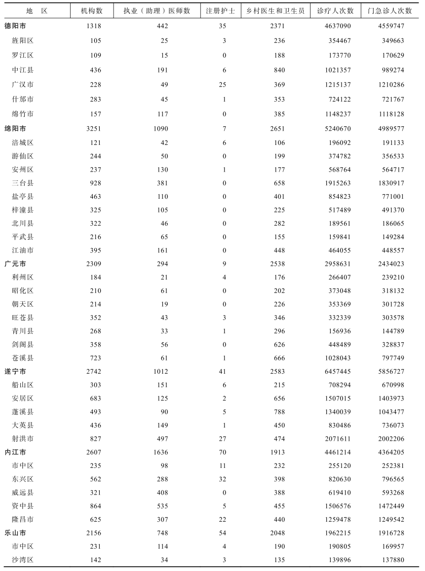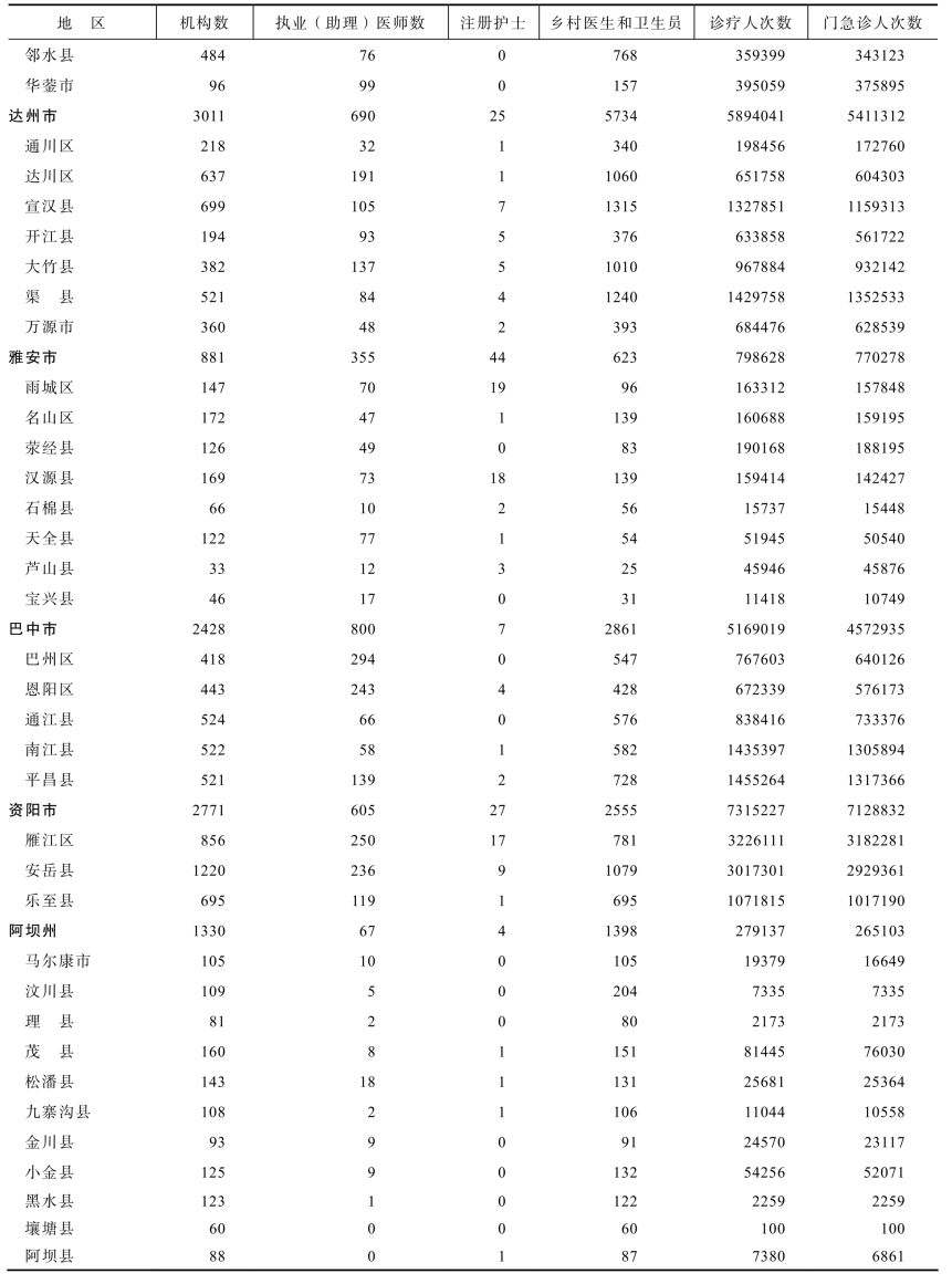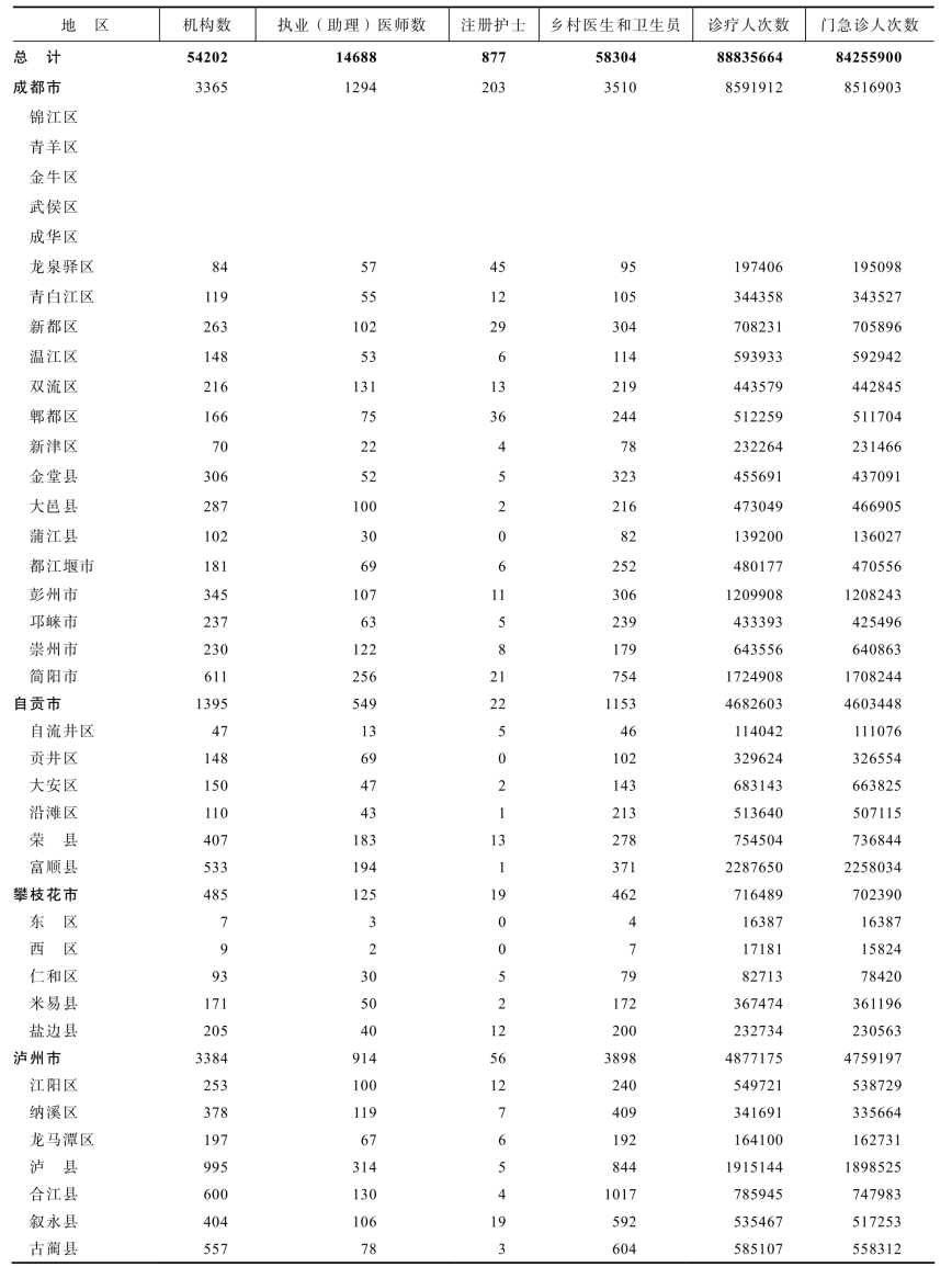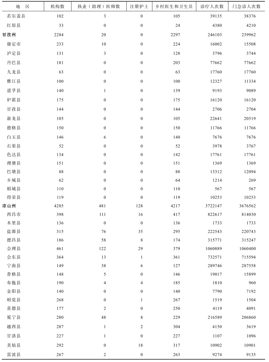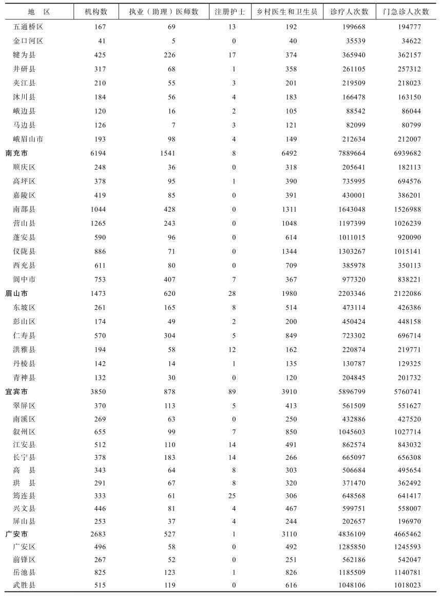 表6-1-3 2020年市(州)及县(市、区)基层医疗卫生机构工作情况