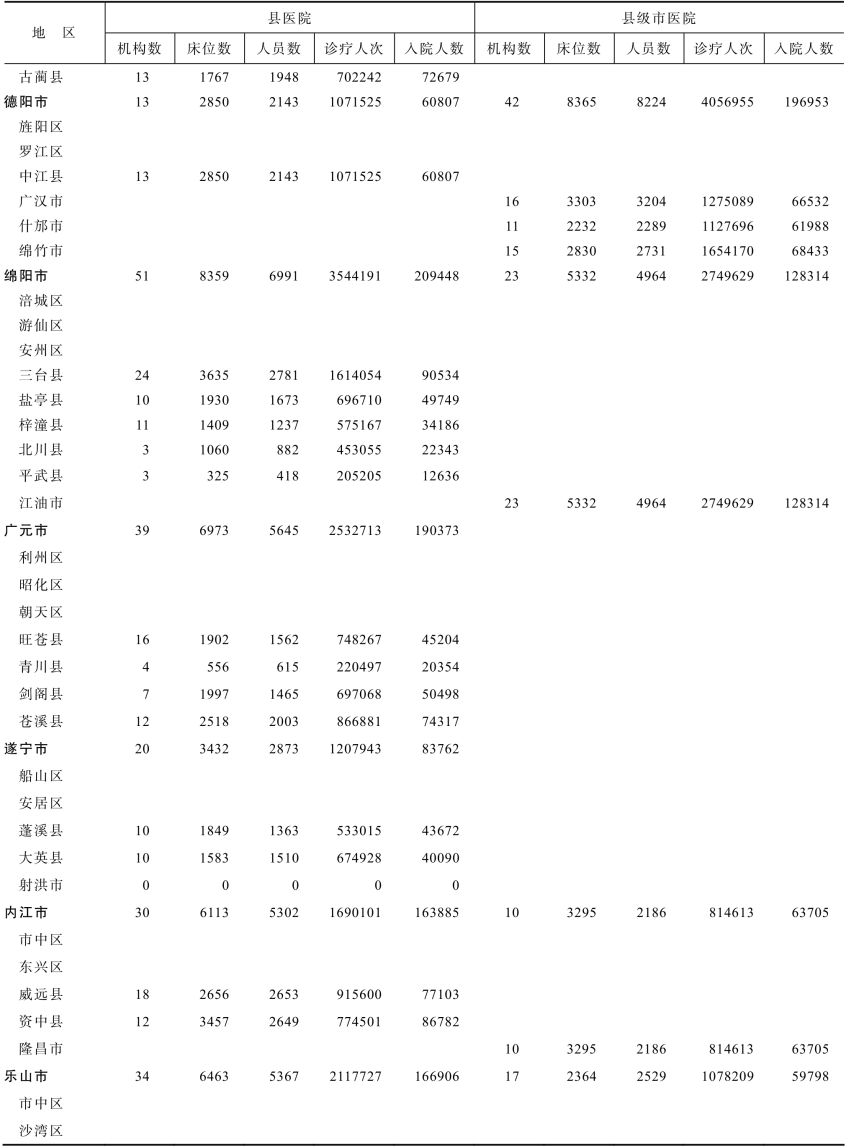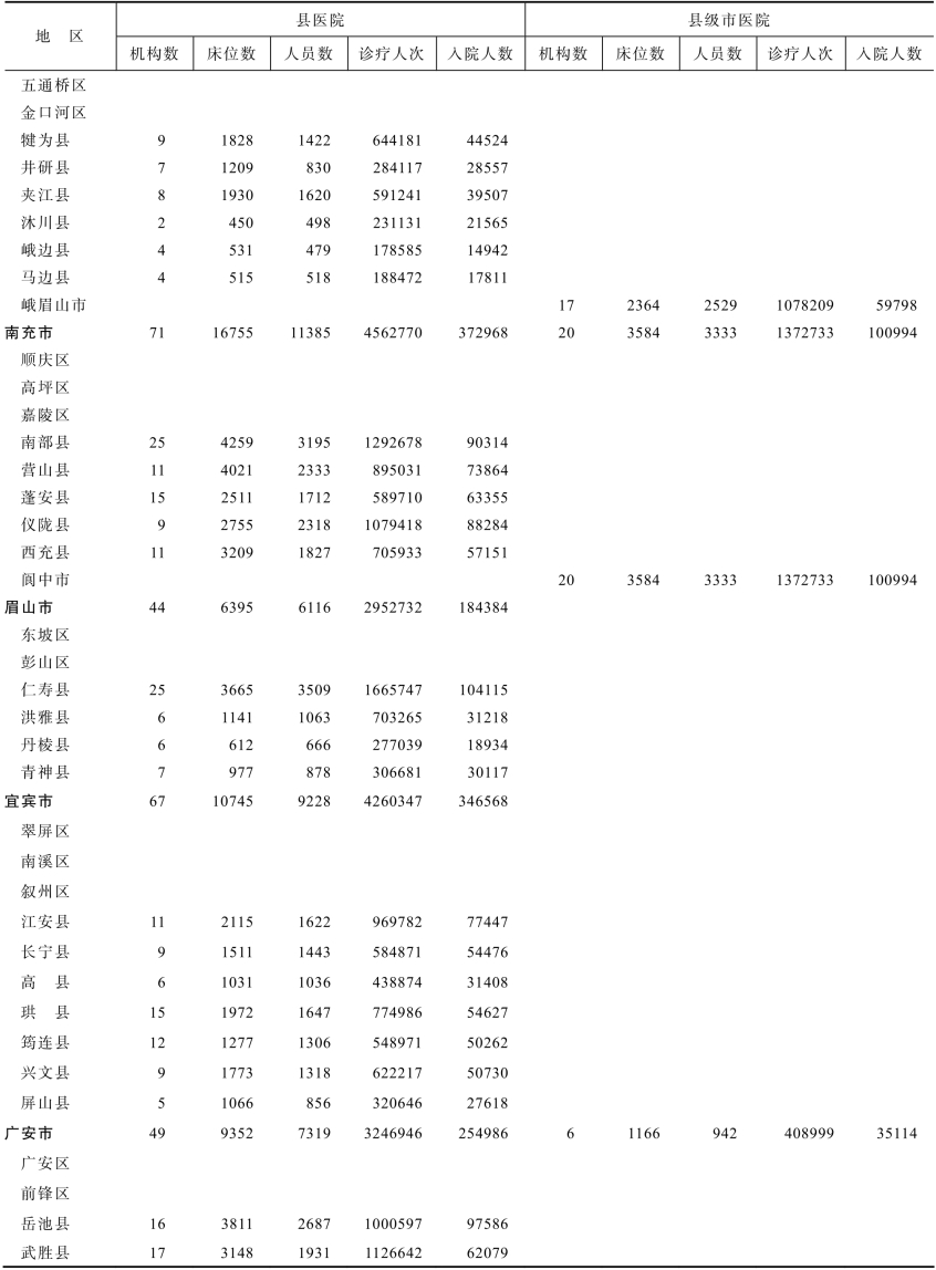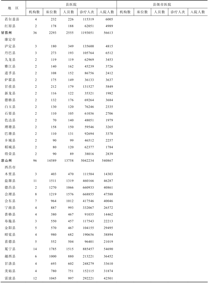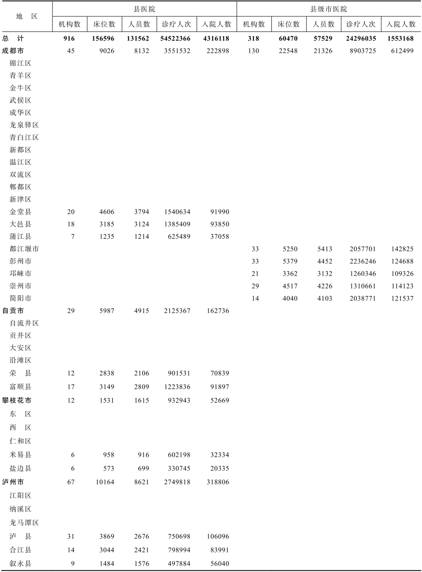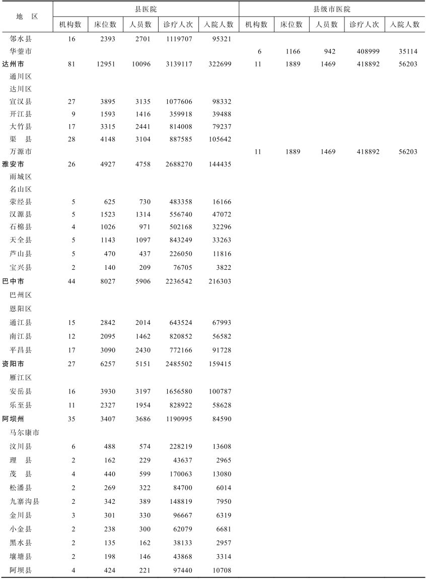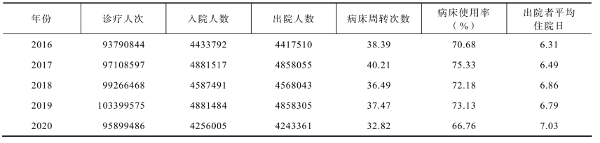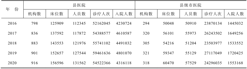 表6-6-1 2016—2020年县及县级市医院工作情况