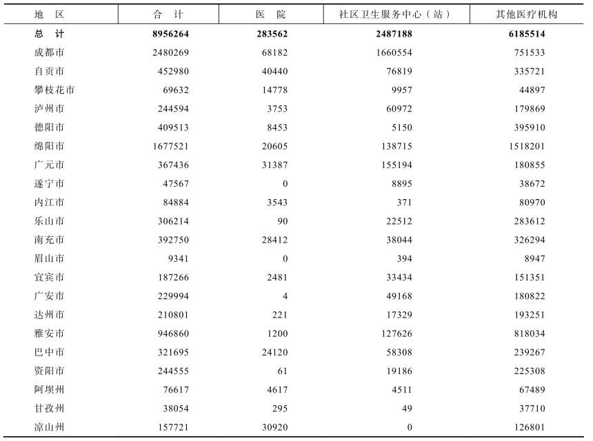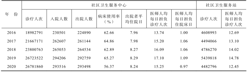 表6-2-2 2016—2020年社区卫生服务中心(站)医疗服务情况