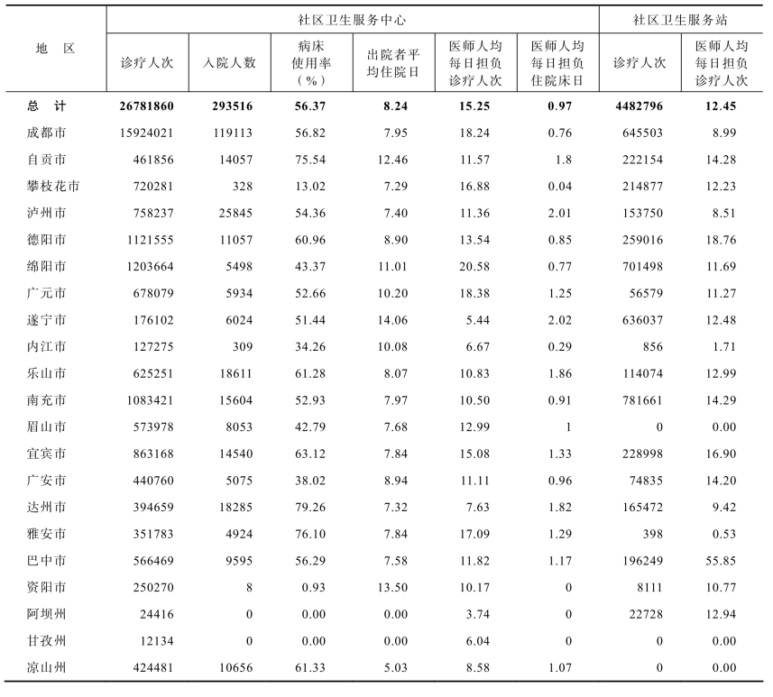 表6-2-3 2020年市(州)社区卫生服务中心(站)医疗服务情况