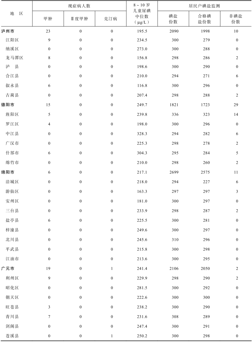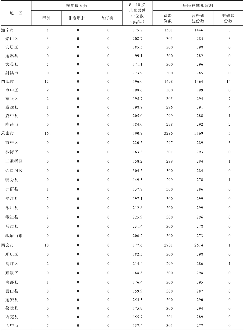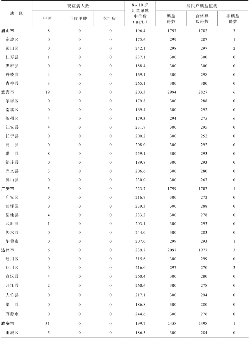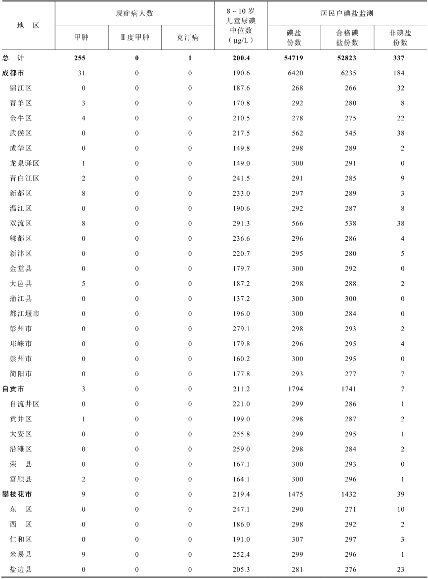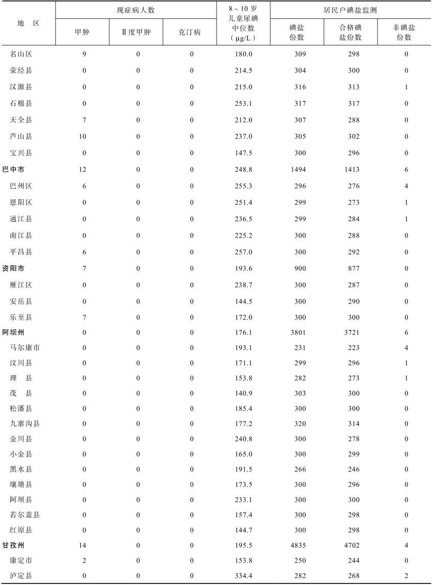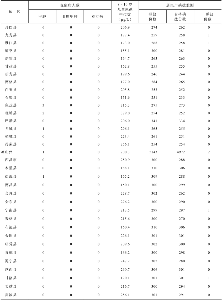 表9-5-5 2020年各市(州)及县(市、区)碘缺乏病防治情况