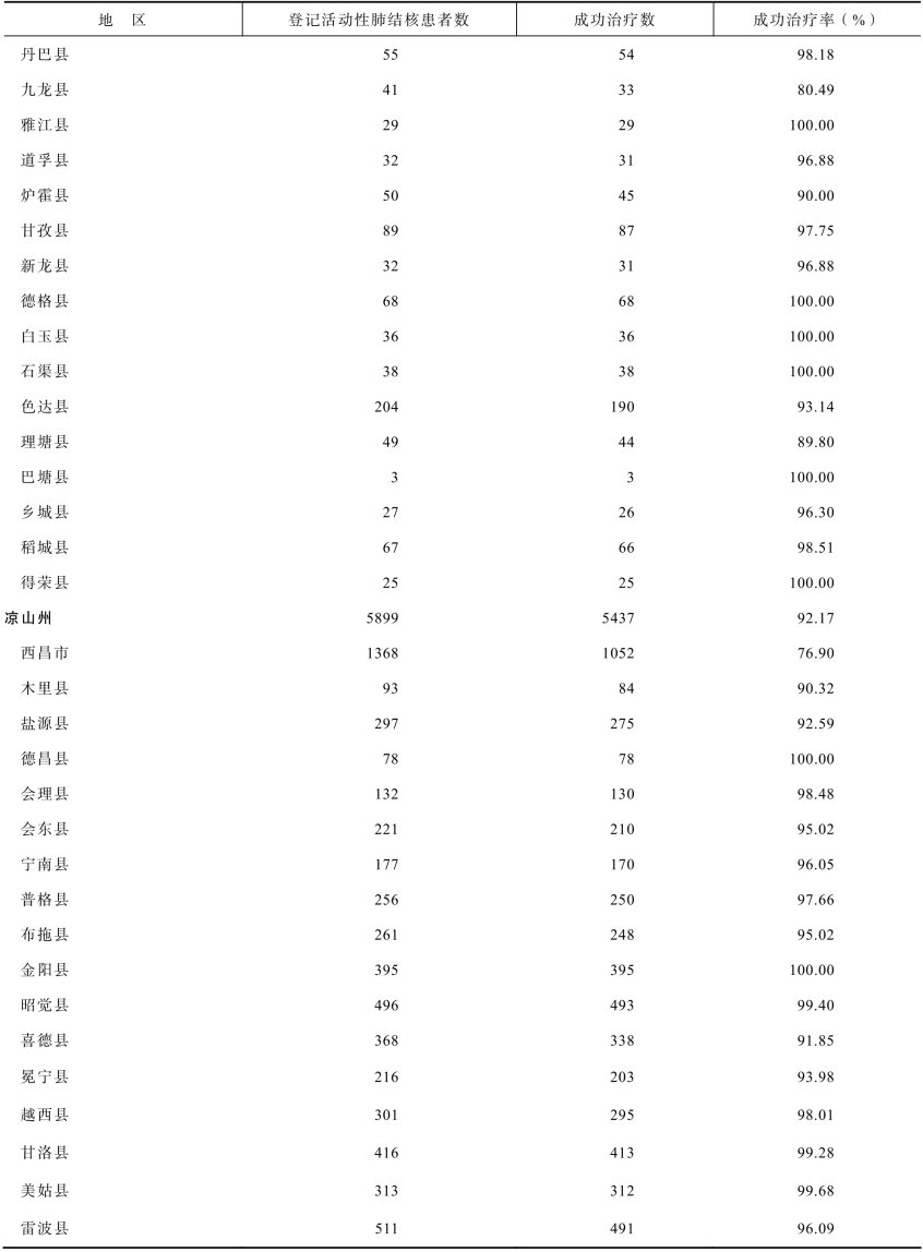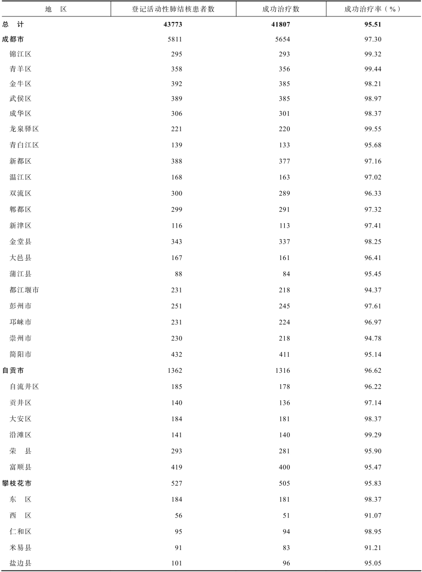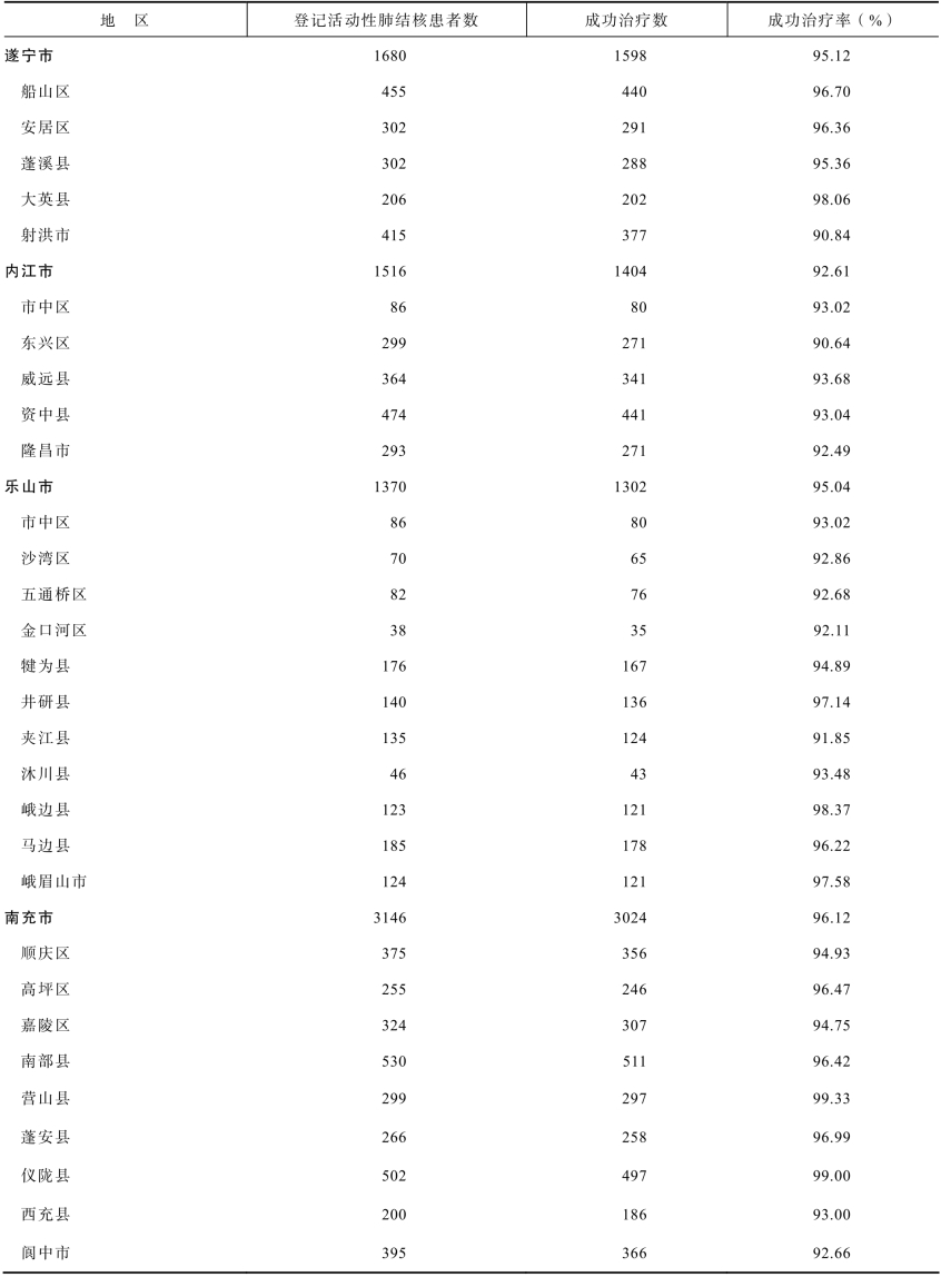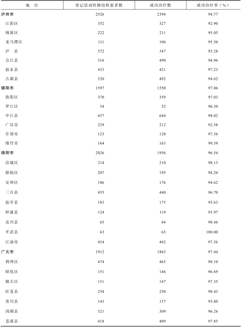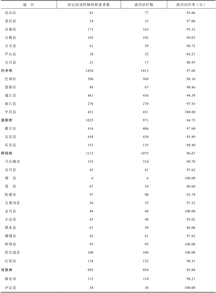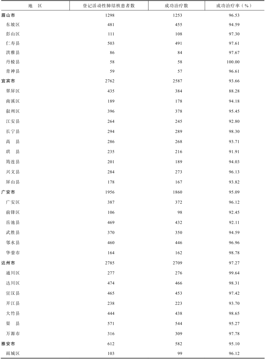 表9-5-6 2020年全省登记活动性肺结核患者及成功治疗情况