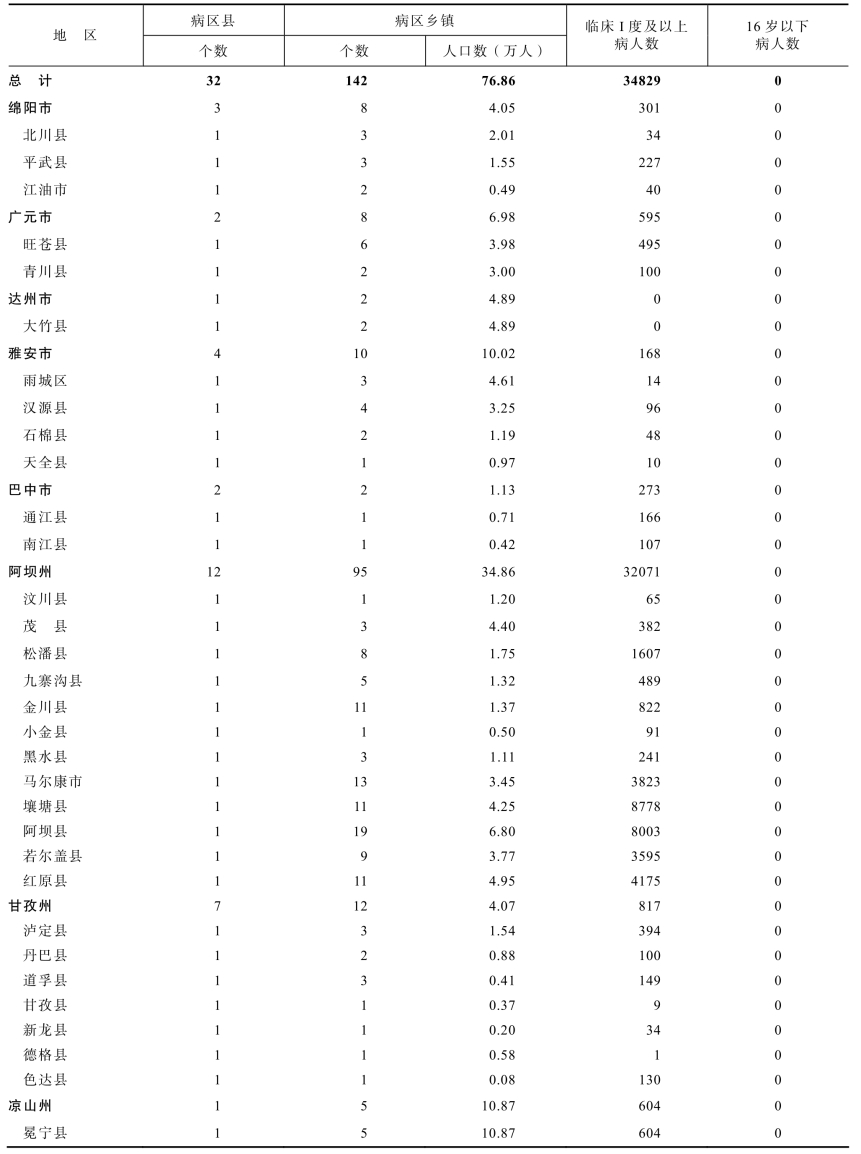 大骨节病临床Ⅰ度以上病人数:年底实有Ⅰ度以上病人总数。