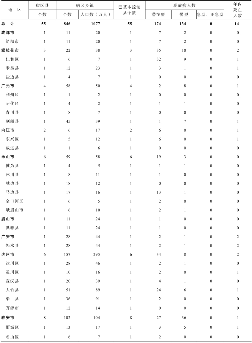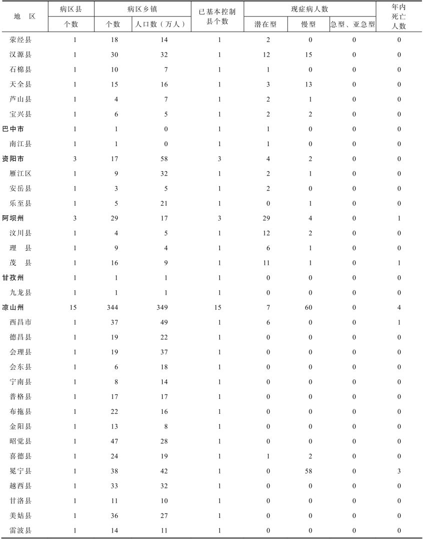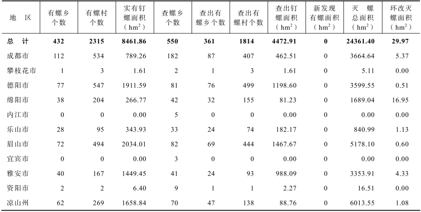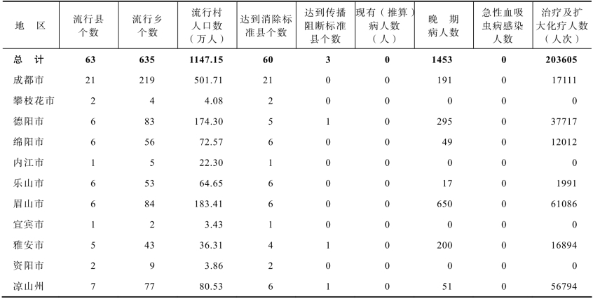 表9-4-1 2020年市(州)血吸虫病防治情况