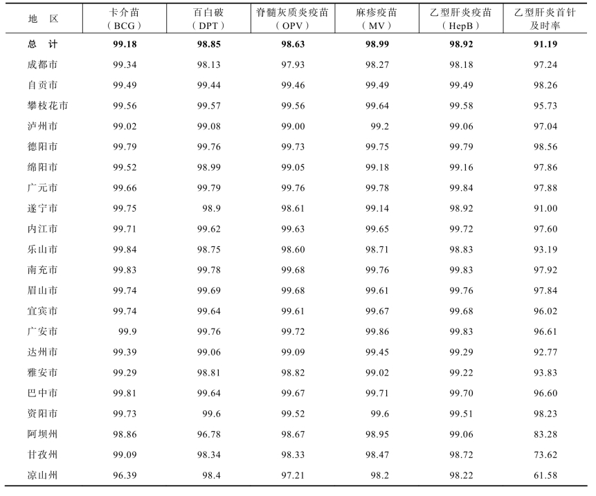 1岁儿童免疫接种率:按照我国儿童免疫程序进行合格接种的人数占全部应接种人数的百分比。