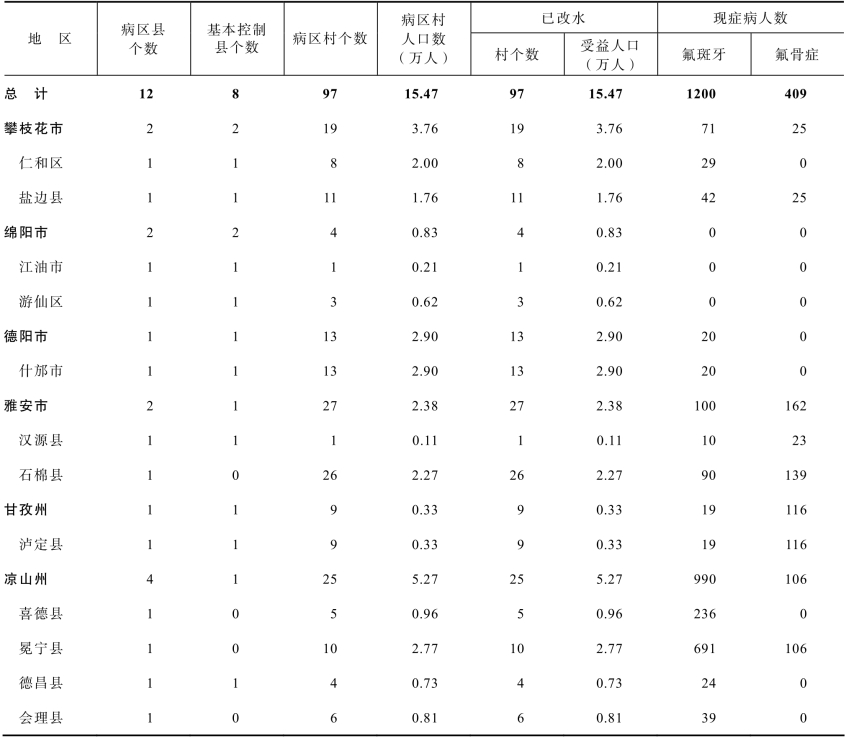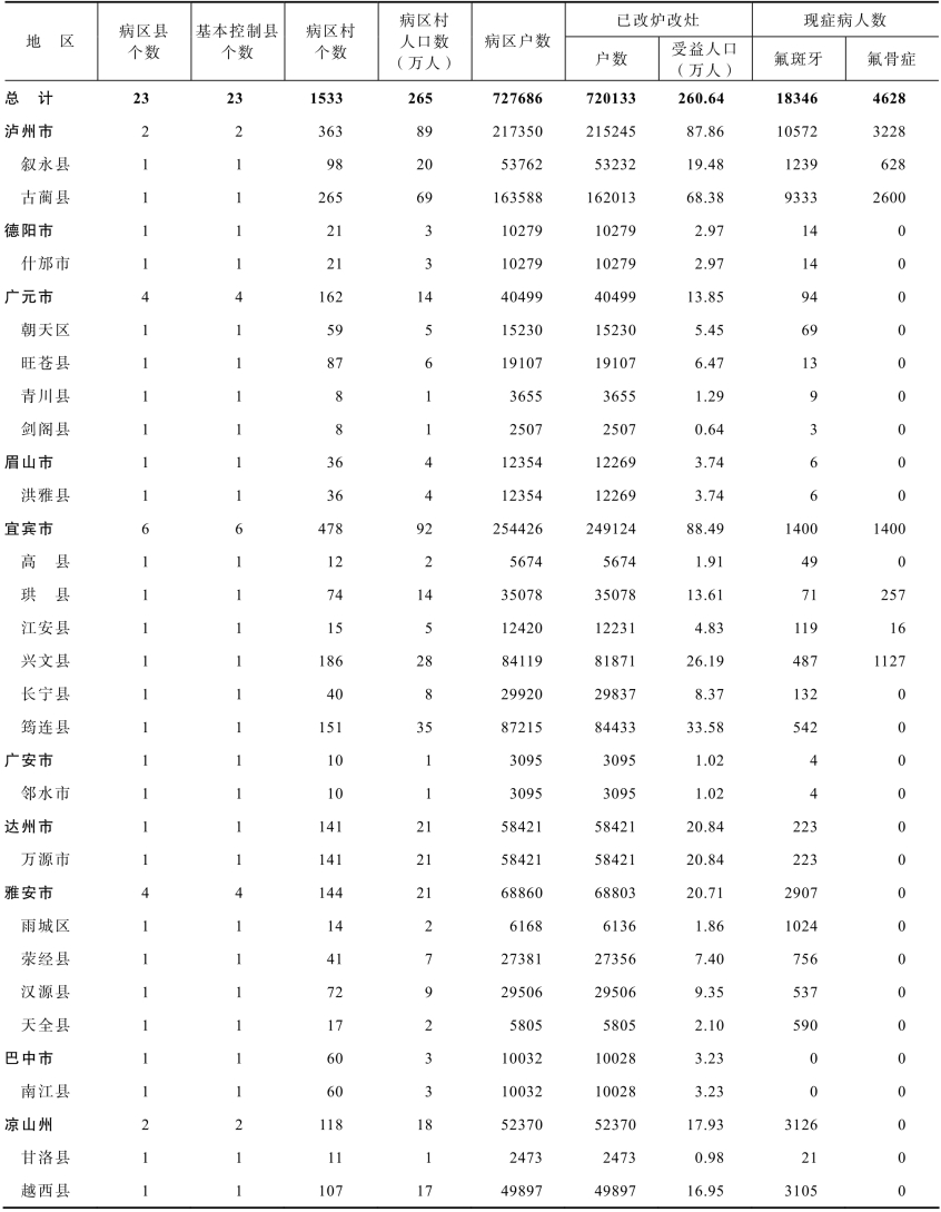 表9-5-4 2020年各市(州)地方性氟中毒(燃煤污染型)防治情况