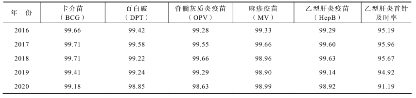 表9-2-1 2016—2020年全省儿童国家免疫规划接种率(%)