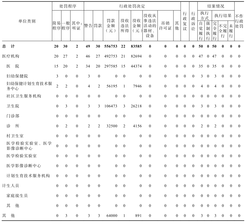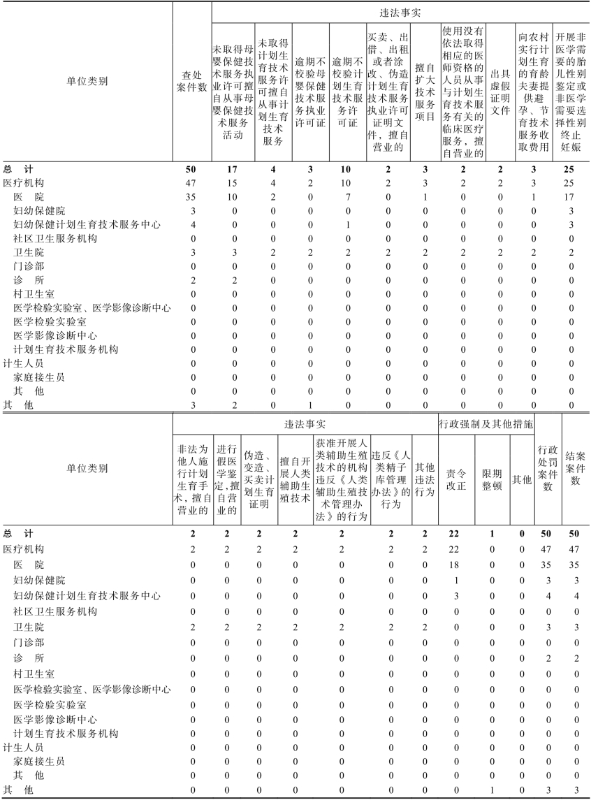 表11-11 2020年全省计划生育卫生监督案件查处情况
