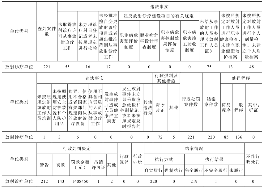 表11-6-2 2020年全省放射卫生监督案件查处情况