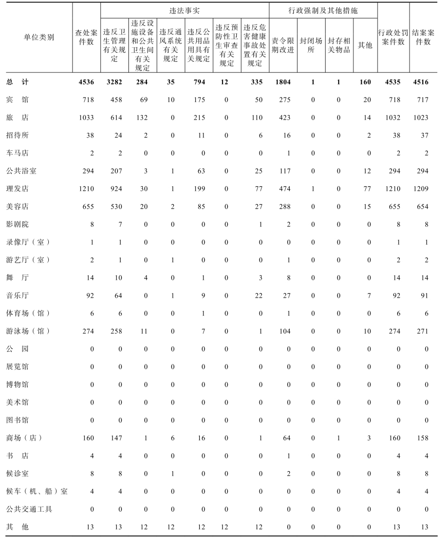 表11-1-2 2020年全省公共场所卫生监督案件查处情况