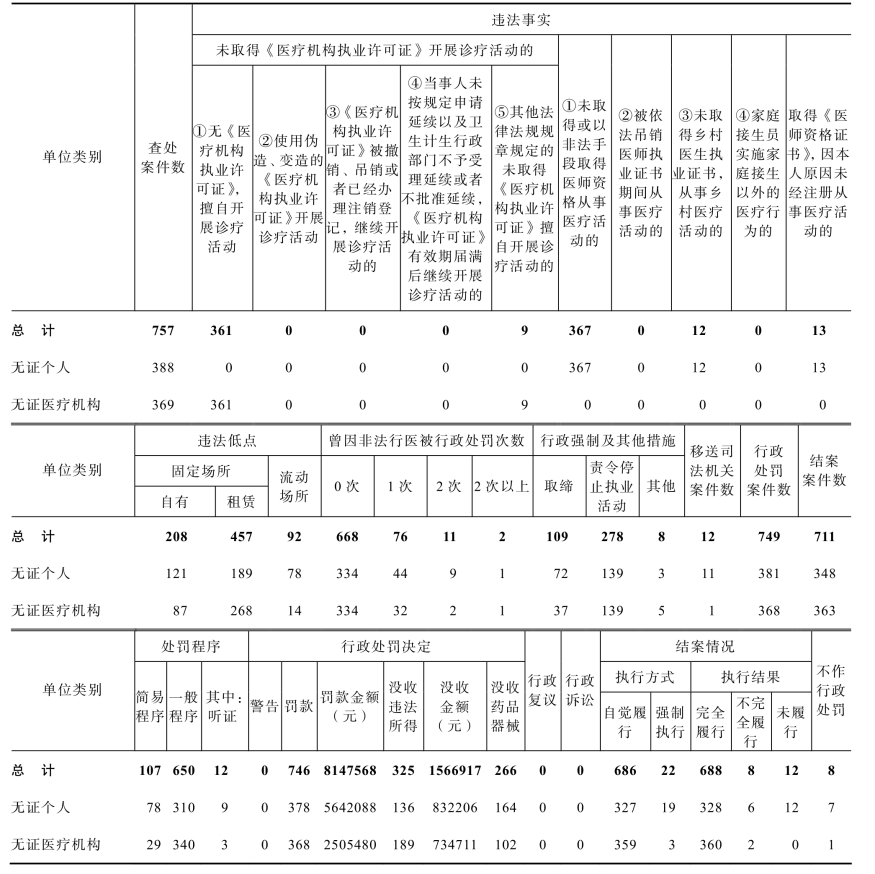 表11-9 2020年全省无证行医案件查处情况