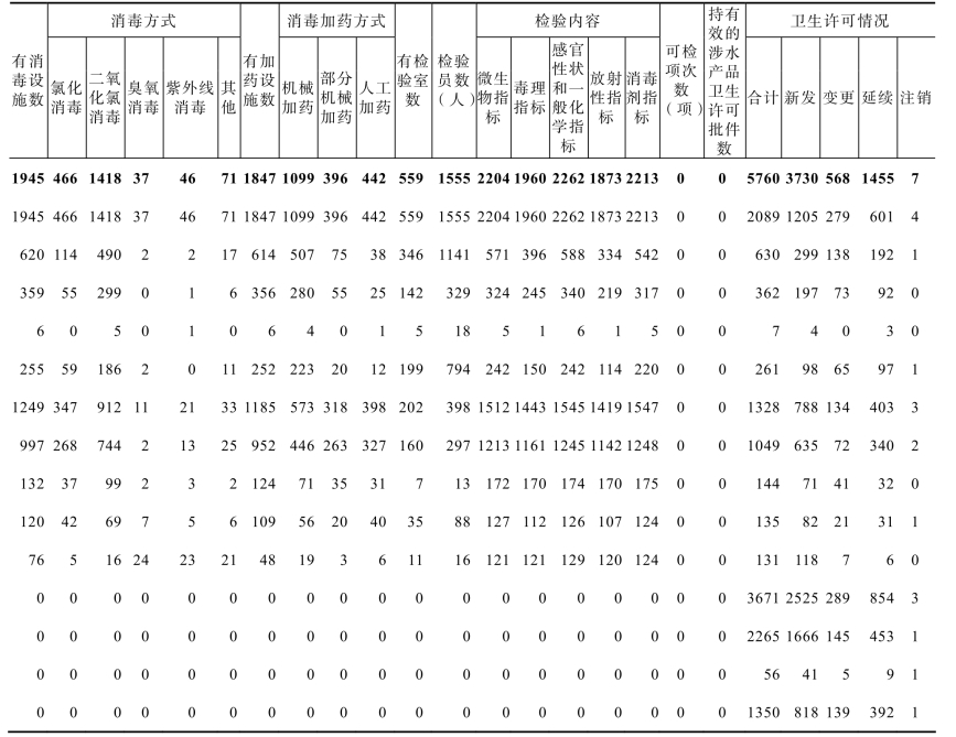表11-2-2 2020年全省生活饮用水卫生(涉水产品)被监督单位情况