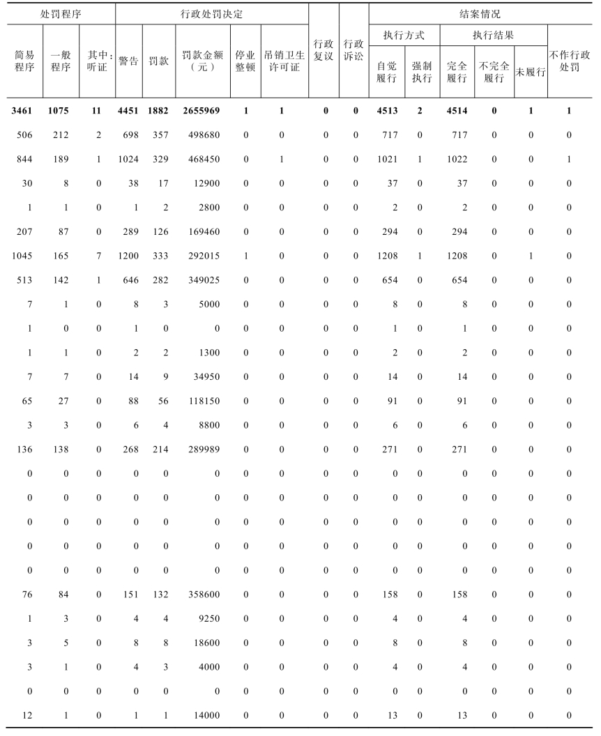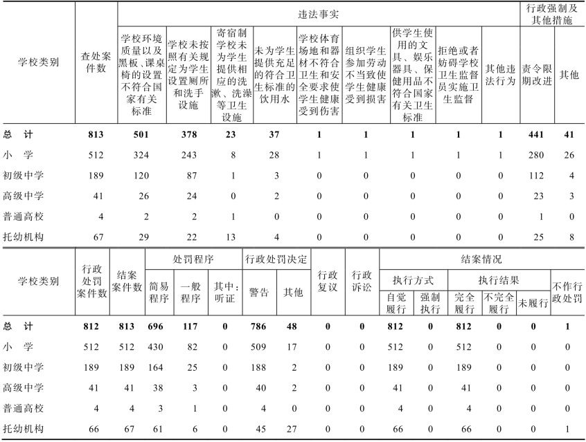表11-4-2 2020年全省学校卫生监督案件查处情况