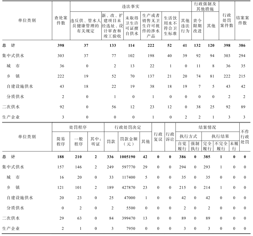 表11-2-3 2020年全省生活饮用水卫生监督案件查处情况
