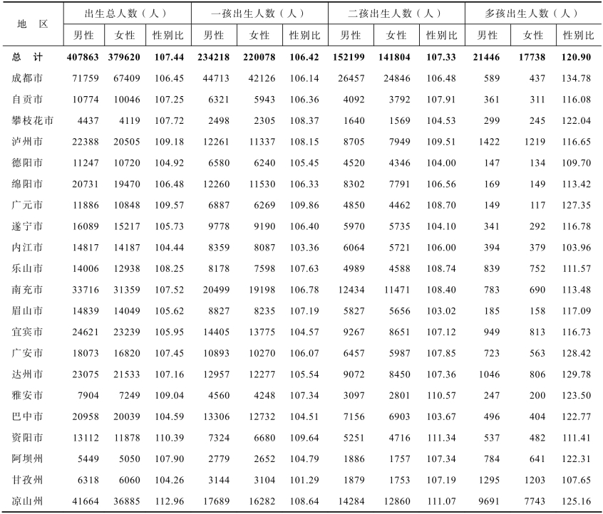 表13-2 2020年市(州)出生人口数及性别比
