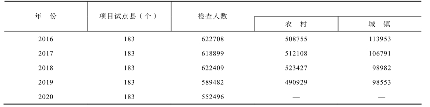 表13-5 2016—2020年国家免费孕前优生项目检查情况