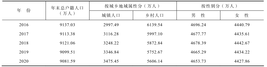 表14-1 2016—2020年全省分城乡、分性别户籍人口数