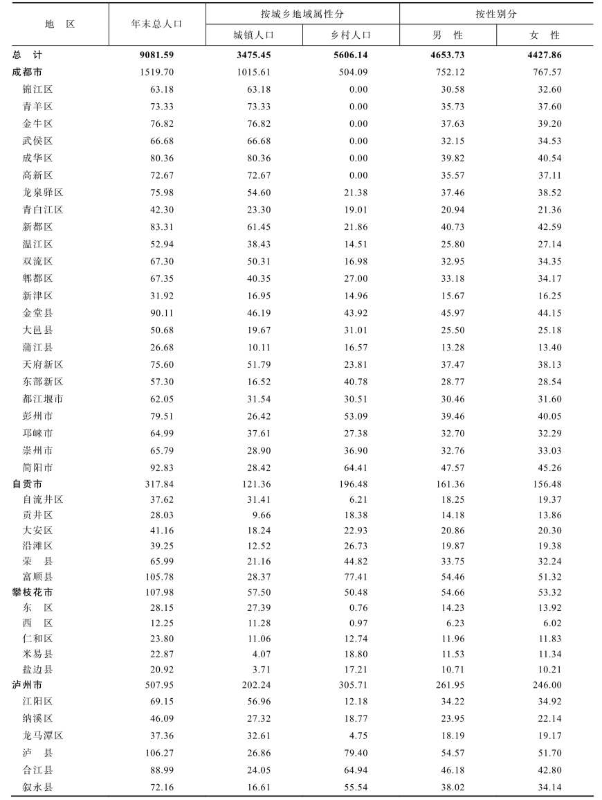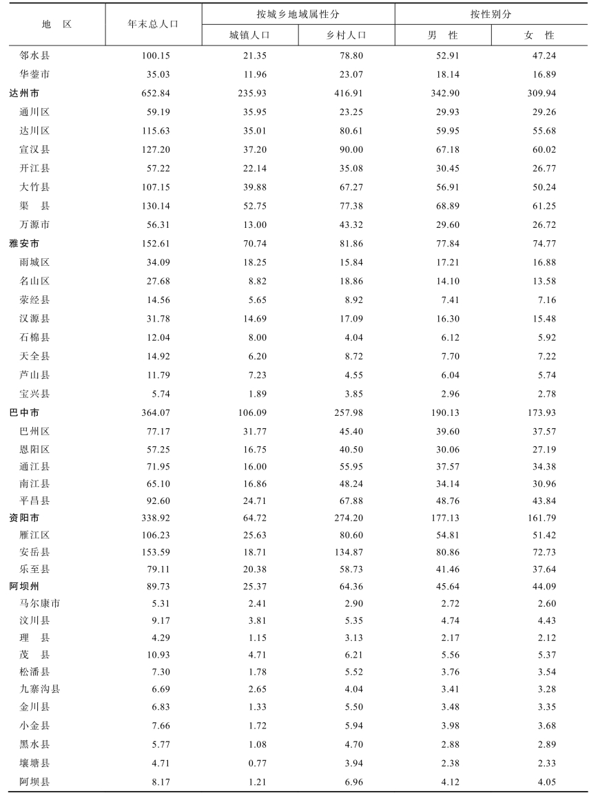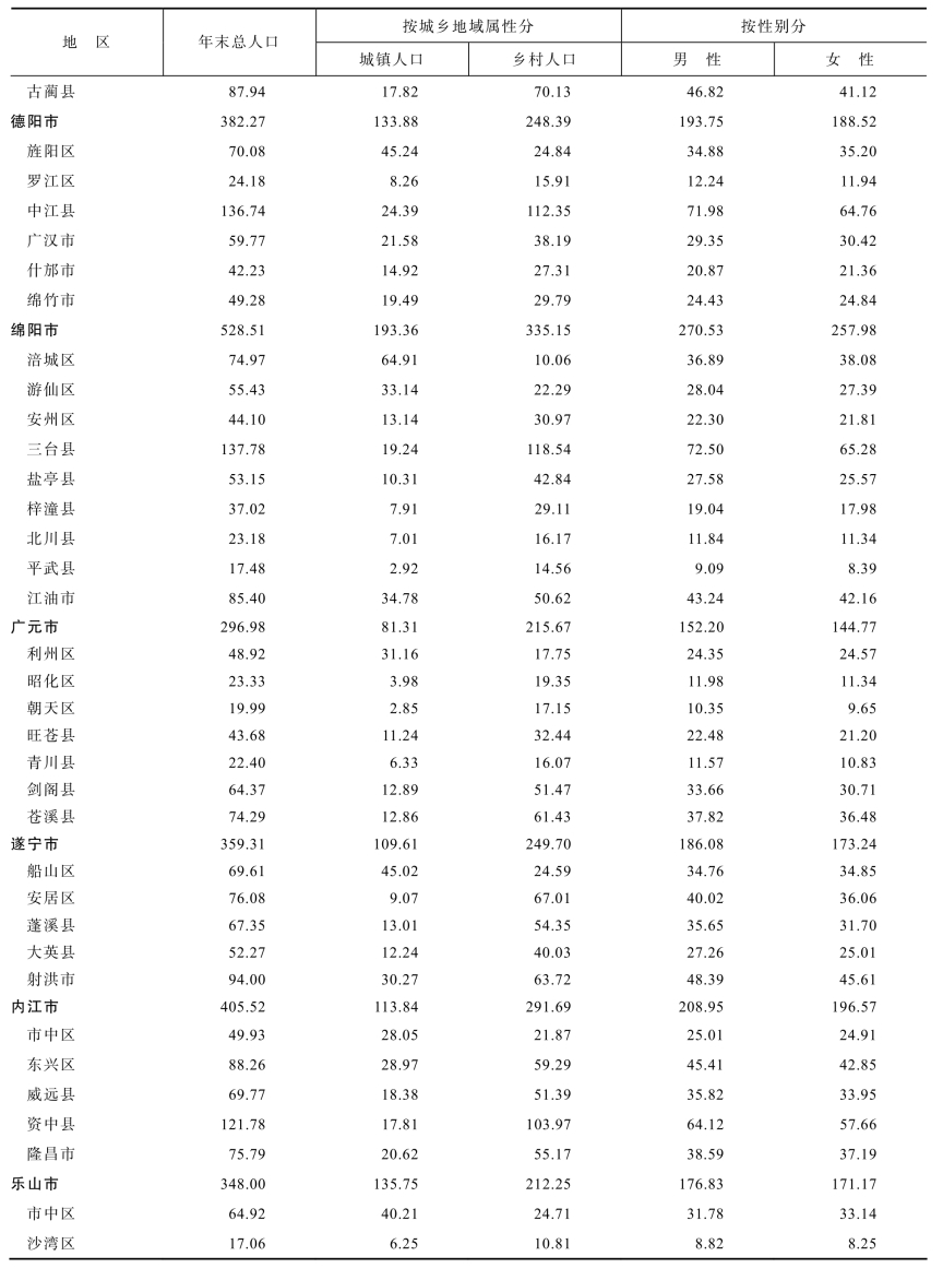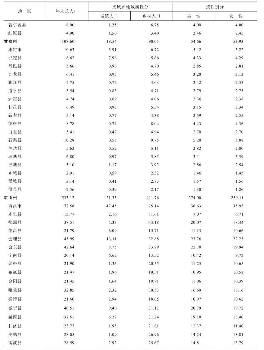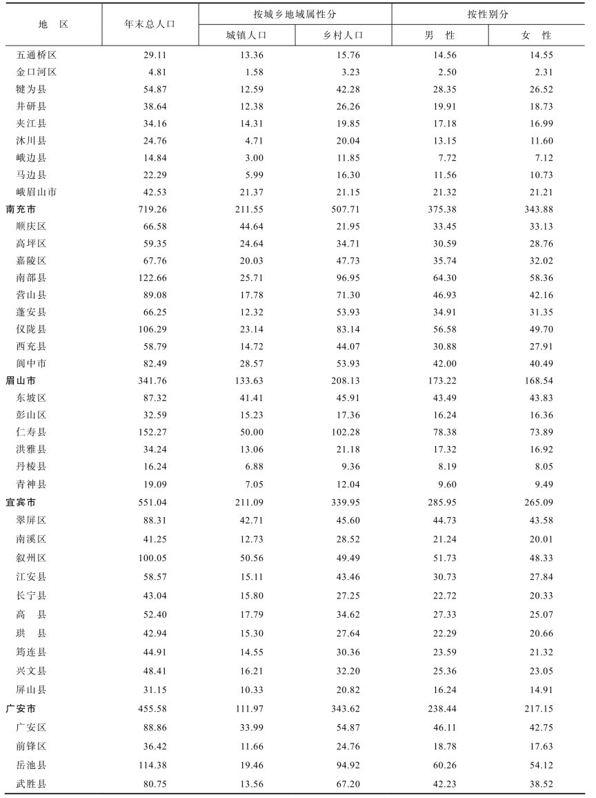 表14-4 2020年市(州)及县(市、区)分城乡、分性别户籍人口数(万人)