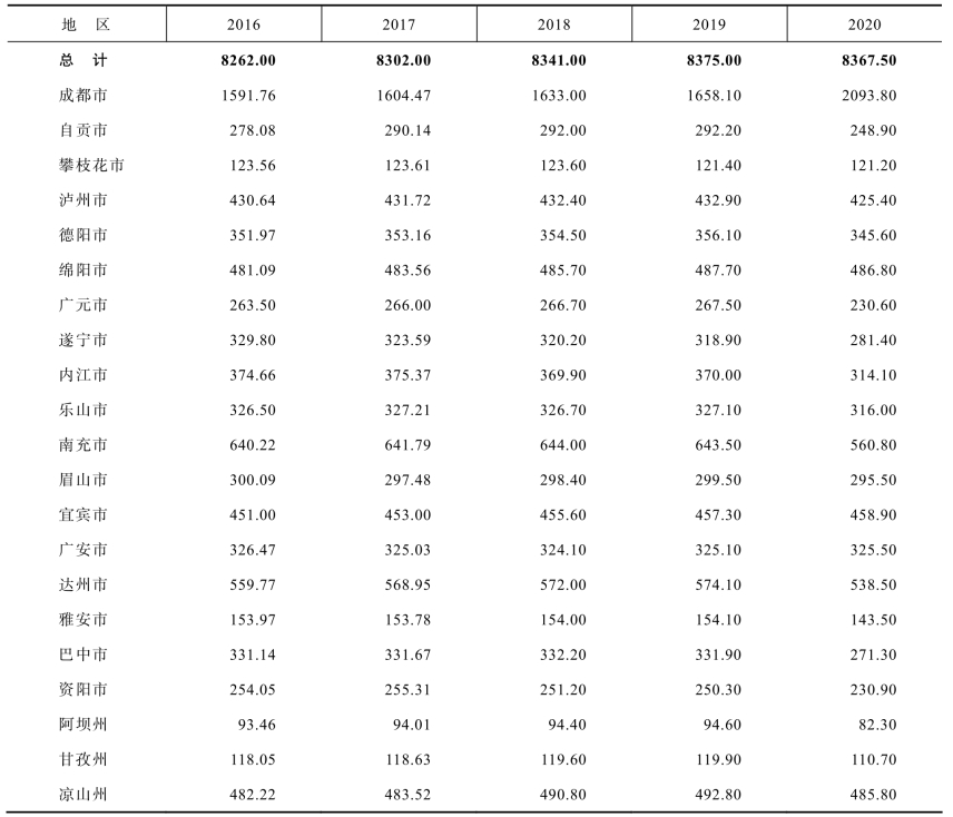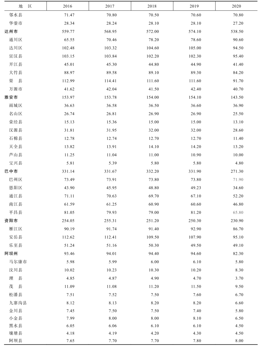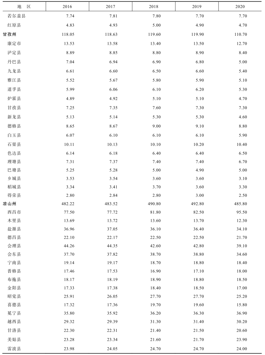 表14-3 2016—2020年市(州)及县(市、区)常住人口数(万人)