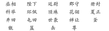 (2)文言词:文言词所反映的事物、现象,现实生活中仍然存在,但已由其他的词所代替。例如: