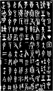 金文是指铸刻在青铜器上的文字,先秦称铜为“金”,所以叫金文。青铜器以钟和鼎最为常见,所以又叫钟鼎文。从商周到秦汉都有金文,这里主要指西周青铜器上的文字。下面是西周铜器上的金文拓片(图3-3)。