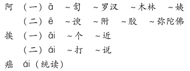 一个字有两个或两个以上的读音而表示的意义相同,这样的字是异读字。汉字自古以来就有异读字。例如《广韵》“峒”徒红切,又徒弄切(黄侃.广韵校录[M].上海:上海古籍出版社,1985:31.)。现代汉字中也有一批异读字。例如“暂时”的“暂”可以读zàn,也可以读zhǎn。审定异读字的读音,就是从现有的几个读音中确定一个为标准音,其余的读音作为异读停止使用。从1957年到1962年,审音委员会分三次公布《普通话异读词审音表初稿》,共审定异读词1 800多条。例如,“暂时”审定为zànshí。1985年12月由国家语委、国家教委、广播电视部发布了《普通话异读词审音表》。表里凡是注明“统读”的字,表示这个字不论用在什么词语中都读成这一个音。例如(~代表字头):