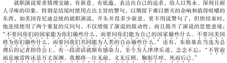 总之,撰写就职演说稿很重要的一条是在内容组织安排方面要做到言之有理,在语言组织方面要谦虚、坦诚,在演讲时要充满信心,使就职演说者与听众共同形成团结、努力、开拓、奋进的共识。