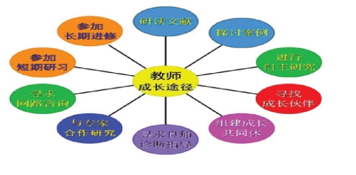 曾经有学者研究,教师专业成长的基本途径至少有以下十条(参见下图):