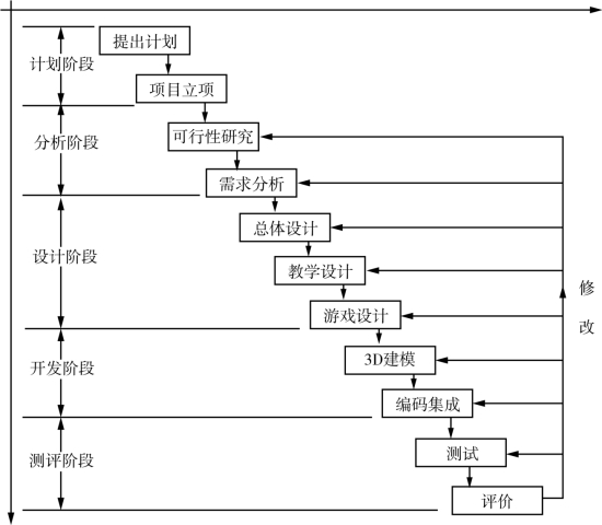 海洋教育服务平台构建遵循理论研究与实验研究相结合的原则,具体构建流程如图1-3 所示,将整个设计开发周期划分为项目计划、可行性研究、需求分析、总体设计、海洋历史事件和地理学信息图谱的时空特征科普库设计、科普作品设计、数字科普教育游戏脚本设计、3D 模型构建、虚拟交互集成、Web 界面开发、程序编码、平台测试和平台评价等十几个关键活动。在设计开发过程中,自顶向下、相互衔接、相互制约,同时根据软件工程思想和设计开发的过程开展项目。