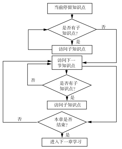 知识论者对知识的实际作用越来越感兴趣,其思想是在知识推理的基础上获得新知识。推理通常被认为是一种扩大的认知资源,因为它允许在已有知识的基础上扩展或增加新的知识。例如,海洋知识工程中课程内容结构划分为若干个“知识点”,某些“知识点”下面又划分为“子知识点”“二级知识点”,或涉及相关的“知识点”。根据学习者本体中对学习者的学习情况的记录,可以对学习者的学习内容做出推理,海洋知识工程知识点推理流程如图2-20 所示。
