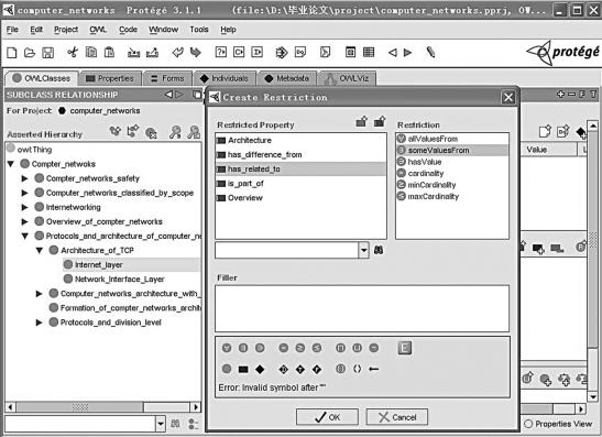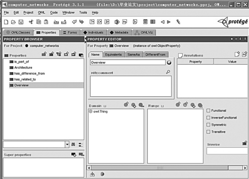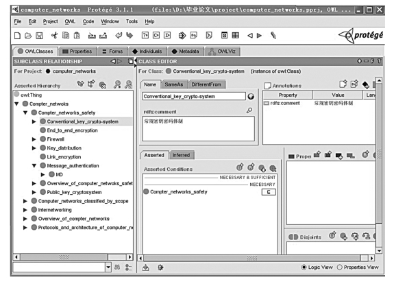 海洋知识工程的知识核心概念集构建如图2-16 所示,本书通过本体开发软件Protégé 来建构海洋知识工程的知识核心概念集。本体开发软件的树形目录展现知识本体相关属性,在知识核心概念层次上设计海洋知识工程领域模型,进行知识类、知识子类、知识属性、知识实例等知识任务的添加、删除、修改等操作,支持知识类别的多重继承、知识数据的一致性核查和文本格式的多形式表示[7]。