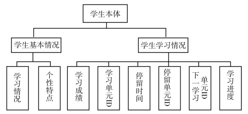 (2)学生学习情况:包括学习单元ID、停留时间、停留单元ID、下一学习单元ID、学习进度和学习成绩等部分。学生的学习情况是根据学生的学习过程而动态变化的,学生的学习情况里的各部分内容属于动态信息。