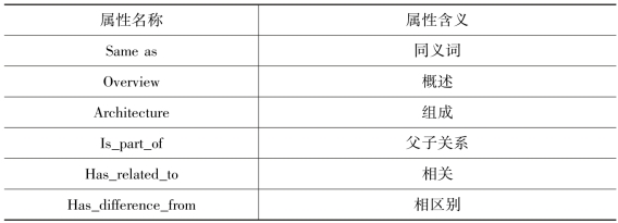 根据海洋知识工程构建方法,定义海洋知识本体概念的属性,海洋知识工程本体属性名称及属性含义如表2-1 所示,包括“同义词”“组成”“相关”和“相区别”等属性含义。