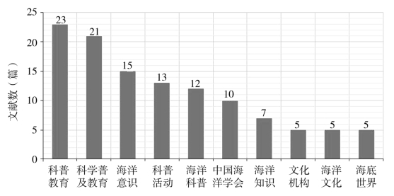 知识图谱(knowledge graph),称为知识域可视化或知识领域映射地图。在海洋科普教育中,我们可以利用知识图谱显示海洋知识及海洋文化发展进程与结构关系,用可视化技术描述海洋科普教育知识单元及其载体,构建和绘制海洋科普知识进程与知识之间的联系,展示其认知结构、进化历史以及整体架构,使得海洋科普知识通过空间布局形象地展示,有助于海洋科普知识检索、分类与知识服务。近年来,国内海洋科普教育研究主题分布情况如图4-1 所示,国内海洋科普教育发文量和被引次数变化趋势如图4-2 所示,知识图谱有助于我们研究海洋科普教育的知识结构、研究热点和发展趋势。