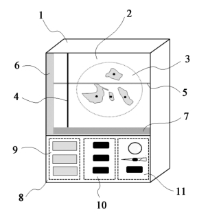 我国南海南部存在有许许多多不同大小的岛屿,其中南沙群岛最为出名,南沙群岛由许多岛、礁、滩和沙洲组成,具有十分重要的战略地位,值得大家去学习探讨。但是目前缺少一种对海洋岛屿进行科普的教育设备,学生只能通过自行搜索相关资料去学习,这样的学习方式比较慢,而且学习的效果也不好。因此我们开发了一种多功能的,能进行智能科普的海洋科普装置。