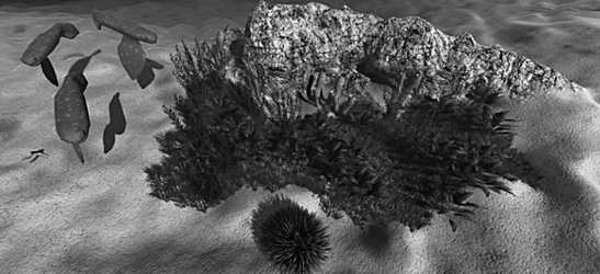 海洋教育干预游戏使用VR 技术手段模仿的海洋场景,3D 建模系统使视觉效果逼真,使用机器学习算法来虚构海底环境,使游戏画面优美。海洋教育游戏部分三维虚拟场景如图6-10 所示。海洋教育干预游戏克服资源、时间、人力等自然条件方面的局限,将游戏想象空间与真实世界实践经验相联结,拓展特殊儿童对海洋世界的认识,增长特殊儿童学习认知经验。