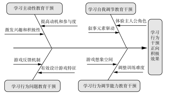 以海洋教育游戏干预为案例,根据儿童学习行为调节任务表和心理弹性评估工具DECA-P2 量表评估特殊儿童和同龄儿童,特殊儿童在学习主动性、学习自我调节和学习行为调节能力等方面与同龄儿童存在明显差异,前者评估得分均落后于后者,隐藏着学习能力发展的不利因素。为了提升特殊儿童心理弹性水平,保证可持续发展的健康心理状态,平台采用海洋教育游戏干预的解决方案。海洋教育游戏干预路径如图6-8 所示。借鉴个体学习行动逻辑路径“学习认知→学习意愿→学习行为”的研究范式,海洋教育游戏干预路径由学习主动性教育干预、学习自我调节教育干预、学习行为问题教育干预和学习行为调节能力教育干预等部分要素组成,通过激发兴趣和积极性、提高动机和参与度、设计叙事元素驱动、体验主人公角色、设计游戏反馈机制、有效设计游戏特征及游戏想象空间、调整训练难度等干预措施,实现学习行为干预正向积极效果。