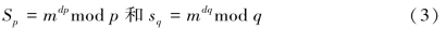 其中,p 和q 是n 的素因子,dp =dmod(p -1),dq =dmod(q -1)。签名s 的计算通过s =asp +bsqmod n 来完成,其中α 和β 是满足以下公式的整数:
