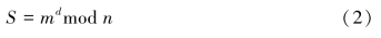 其中,m =H(M),H 是杂凑函数,输出是区间[0,n - 1] 内的整数。加密平台签名操作,签名者计算公式如下: