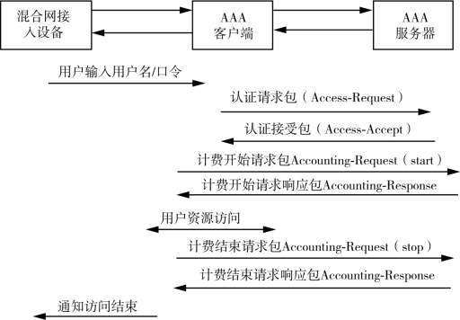 异构网络身份认证系统认证流程如图6-15 所示,认证系统采用网络访问控制设备附带认证的功能对用户请求进行认证。异构网络身份认证系统包含了用户认证和应用授权两个关键应用。用户需要在混合网接入端输入个人信息到认证系统,认证系统负责认证和应用授权,保证了网络教育资源利用的合法性与安全性。
