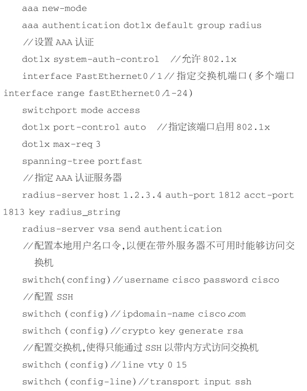 异构网络身份认证系统的实现与配置过程:①Radius 接入服务器系统的安装;②在Windows Server 2008 的服务器上安装WinRadius 或SIP等认证计费软件;③在客户端安装802.1x 拨号认证软件。实验仿真平台通过“Vmware”“DynamipsGui”“c3640-is-mz.124-10.bin”等计算机软件模拟出相应的设备。异构网络身份认证系统网络配置命令如下所示: