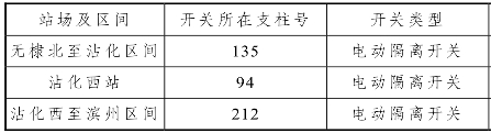 沾化西站隔离开关如表2-13所示。里程DK75+412 DK 92+102 DK 102+611