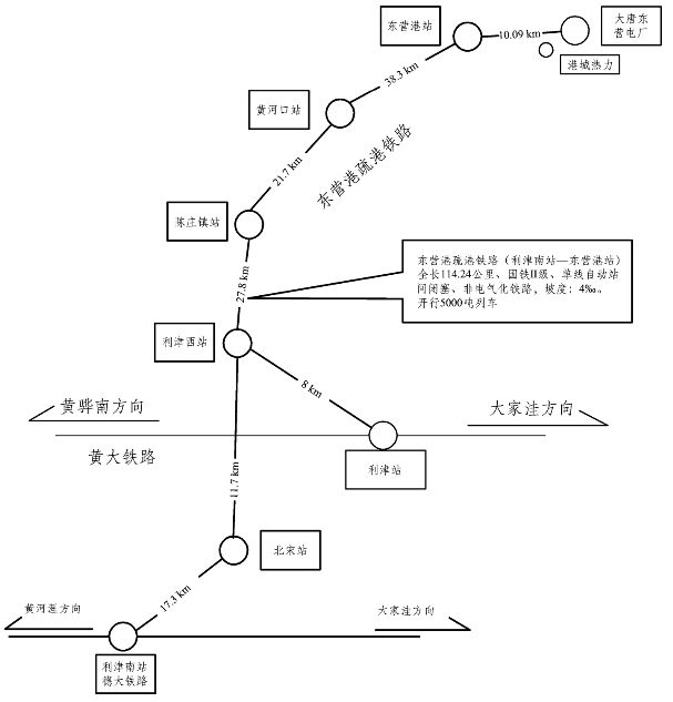 ② 黄大铁路与滨港铁路列车交接地点为滨州物流中心卸煤场。
